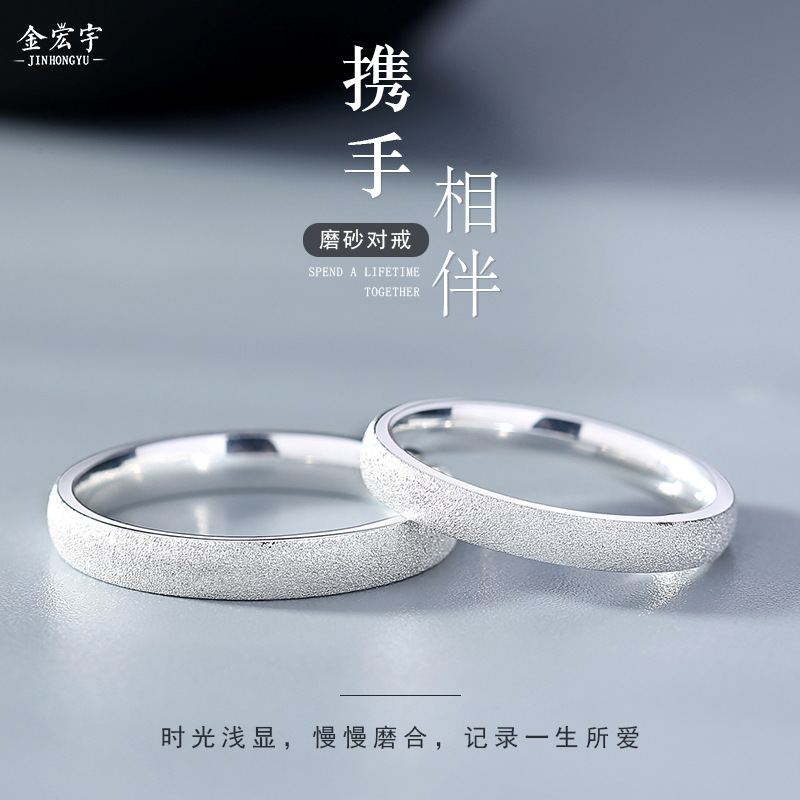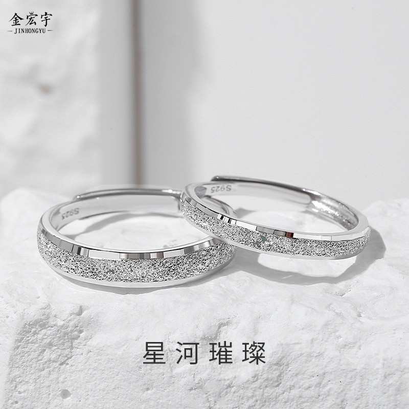 金宏宇925純銀満天星カップル指輪のペアはシンプルで豪華な艶消し口と指輪のリングです。