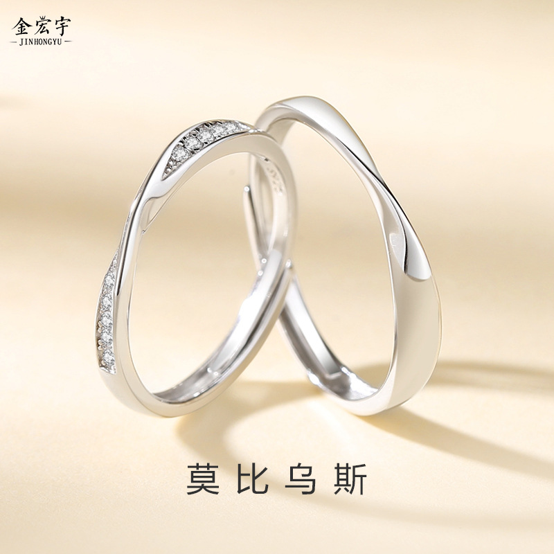 Jinhongyu 新しいメビウスの輪カップルリングスターリングシルバーペアファッションインターネット有名人クラシック中国のバレンタインデーリング卸売