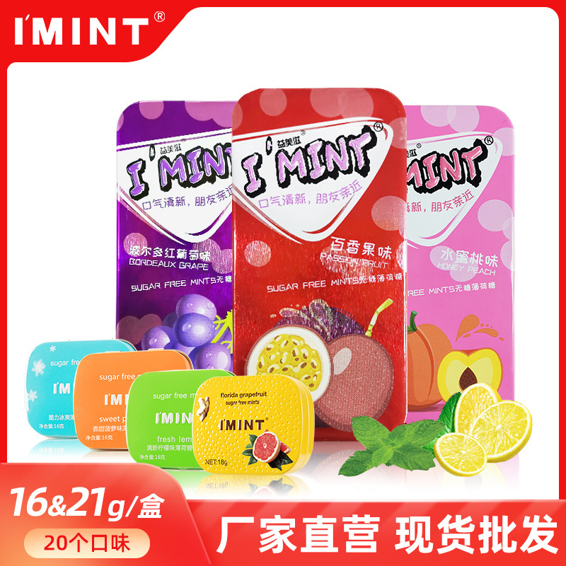 I'MINT無糖ミント糖携帯鉄箱カップルデート清新口調果物味ガム卸売り16g