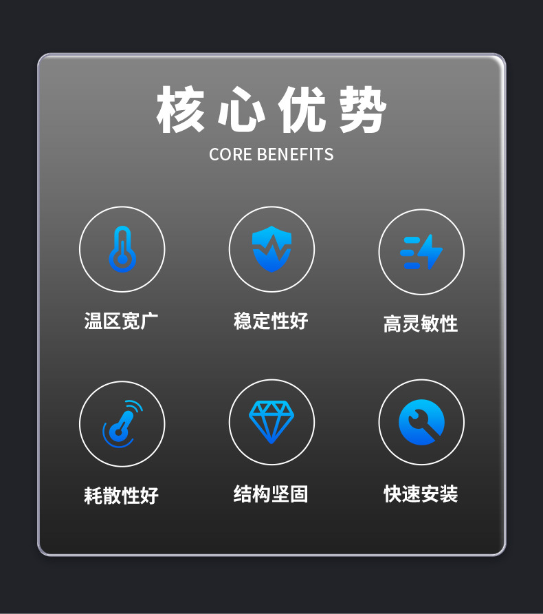 1. 产品的标称阻值 2. 产品的精度误差 3. 产品的B值系数 4. 产品的探头规格
