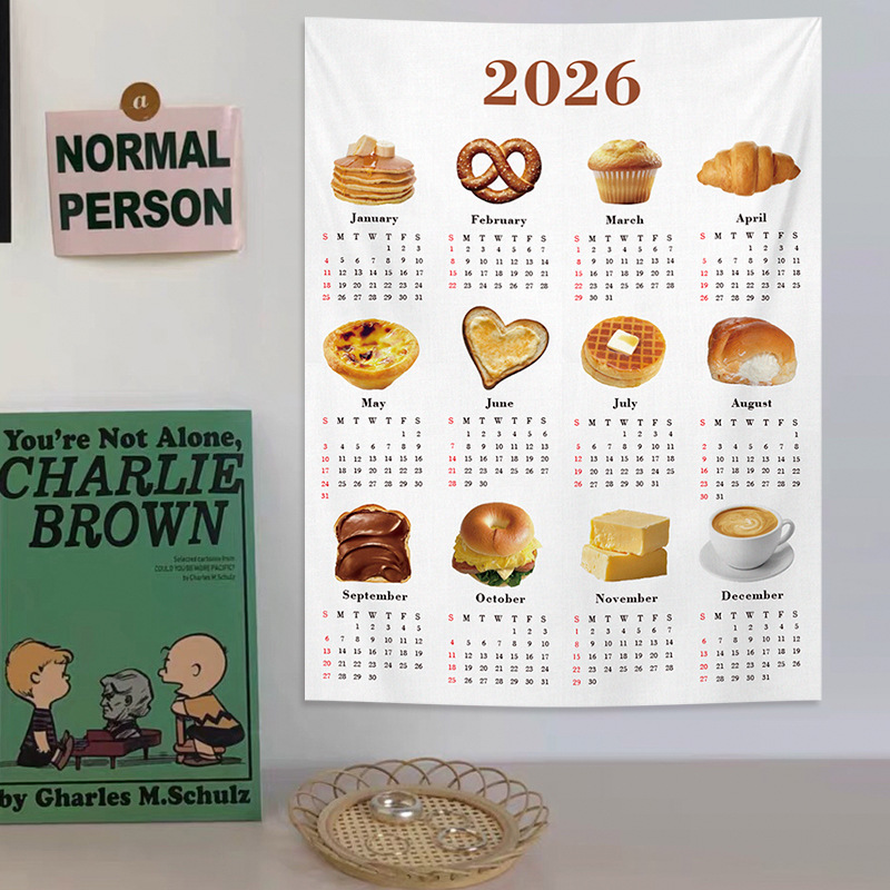 2026年カレンダー、ミニマルでインスタ映えする壁掛け布、寝室の壁飾り、背景布、人気の部屋の壁布、壁掛けカレンダー