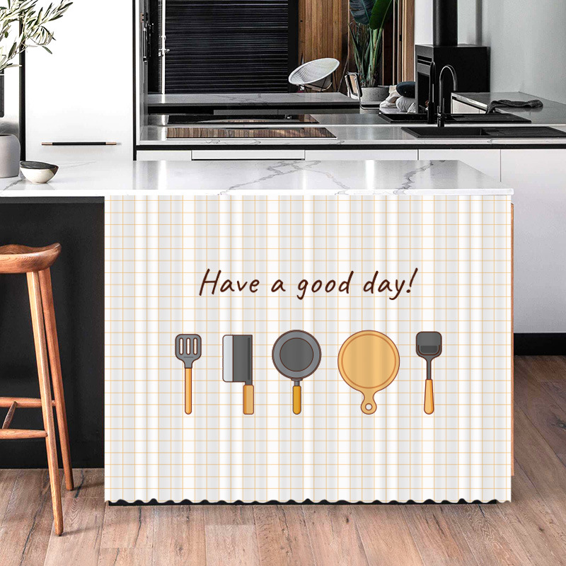 台所の戸棚はカーテンのマジックを隠して雑物の棚を貼って醜いカーテンを隠します。