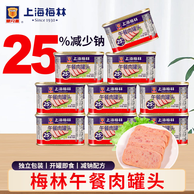 梅林减少钠25%午餐肉198g/罐独立包装梅林午餐肉猪肉速食罐头