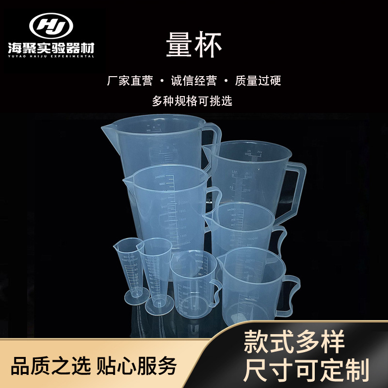 多様な仕様のプラスチックPP計量カップ、ハンドルなし、目盛り付き、透明ビーカー、ポリプロピレン製計量カップ、実験器具