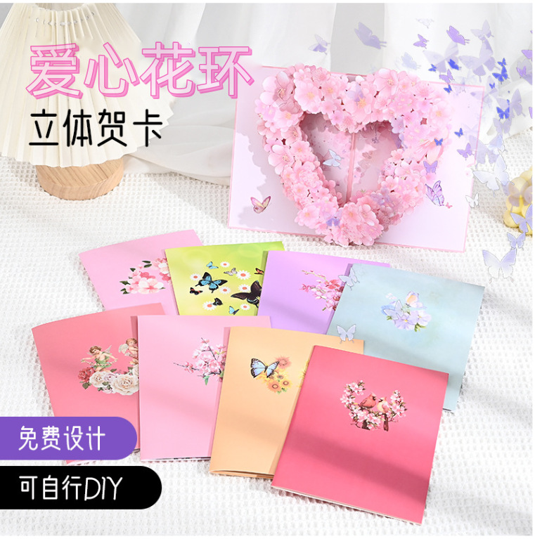 祝日のグリーティングカード七夕愛蝶立体グリーティングカード卸売りカスタムロマンチックなテーマ