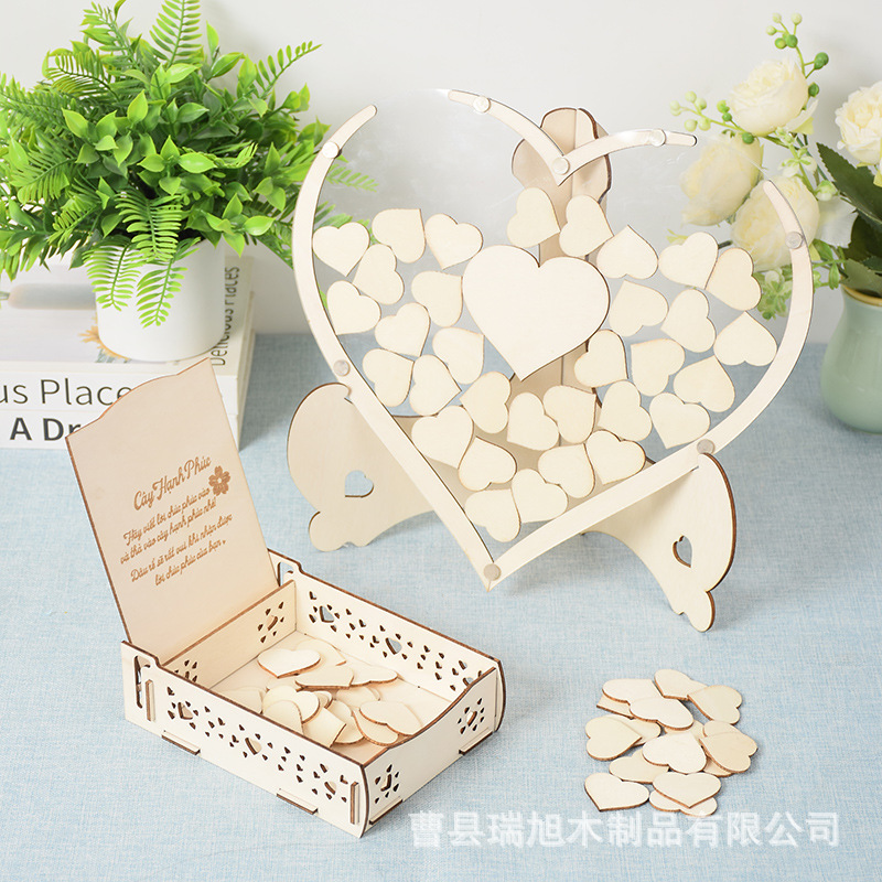 工芸品の結婚式の装飾の結婚式の木造の署名台のフォトフレームの愛の木造の伝言板の冊の誕生日の結婚式の配置