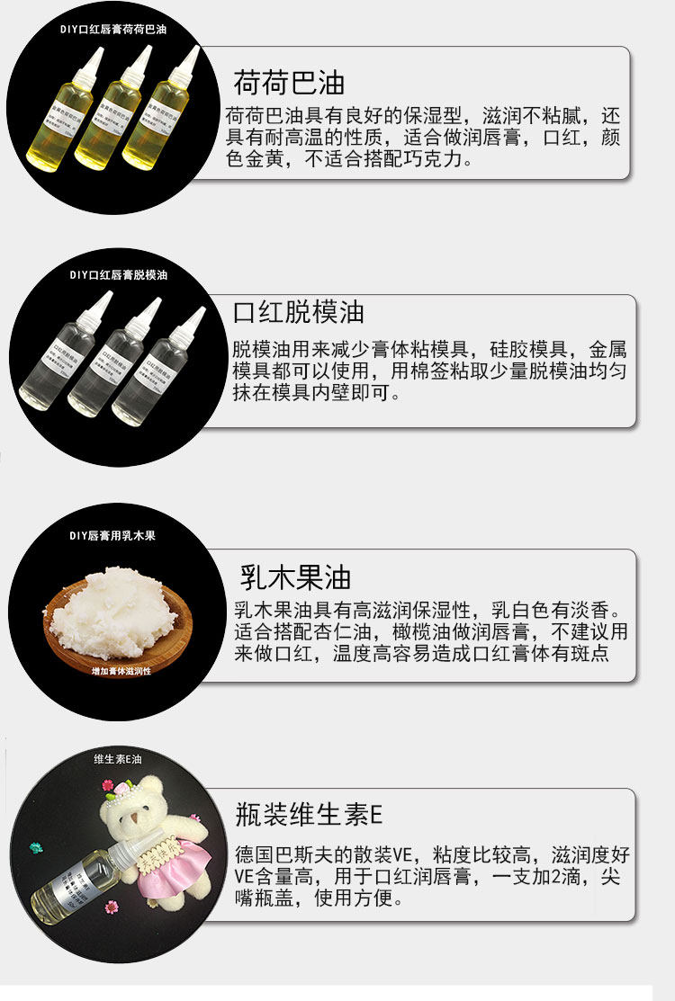 自作口紅diy潤唇膏材料基礎油オリーブ油甘いアーモンド油ホホバ油ve乳木