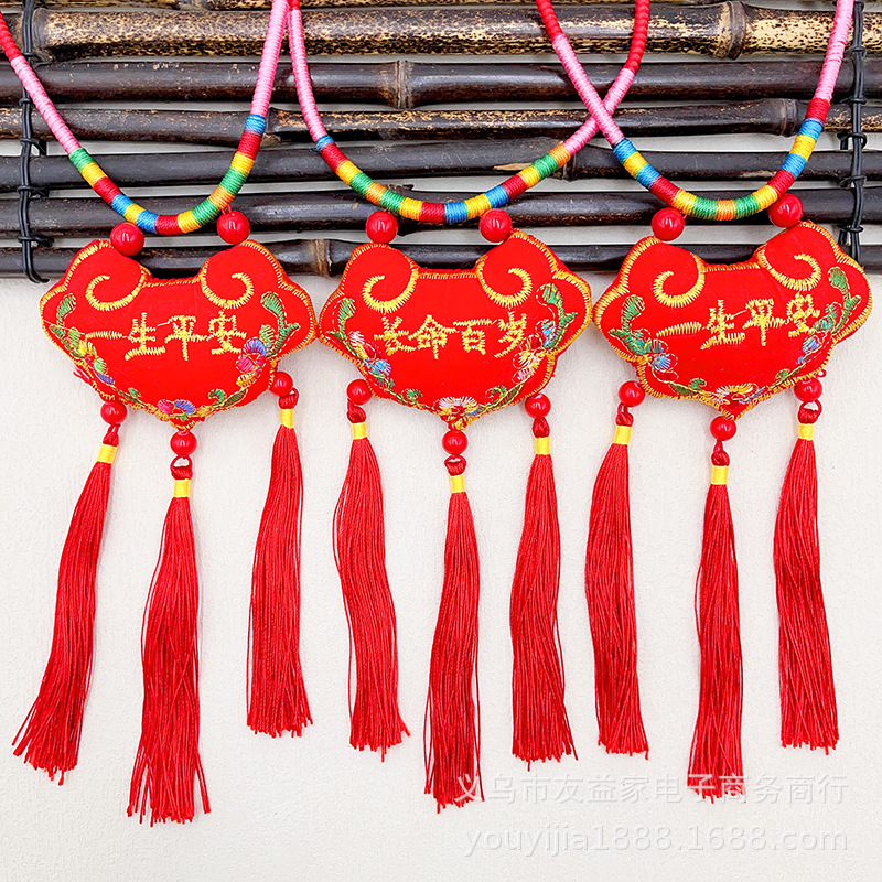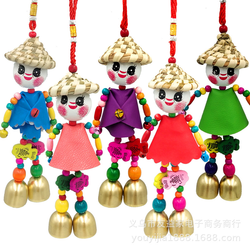 【说明】:双面、绣花布棉布、木鱼 木珠、金色风铃等搭配组合而成