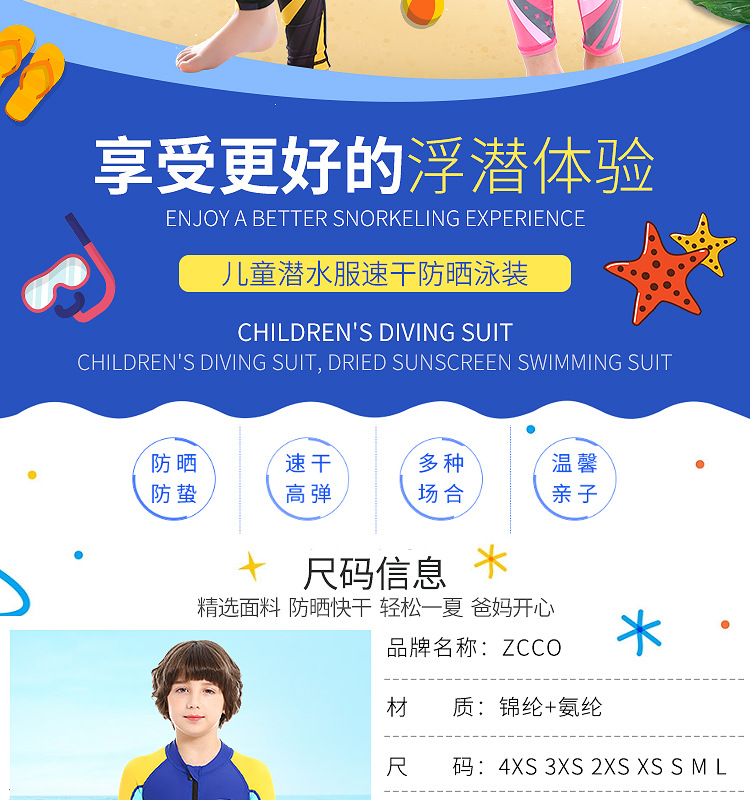 Zcco新型子供ウェットスーツアウトドア日焼け止めワンピース水着速乾長袖男女子供水着