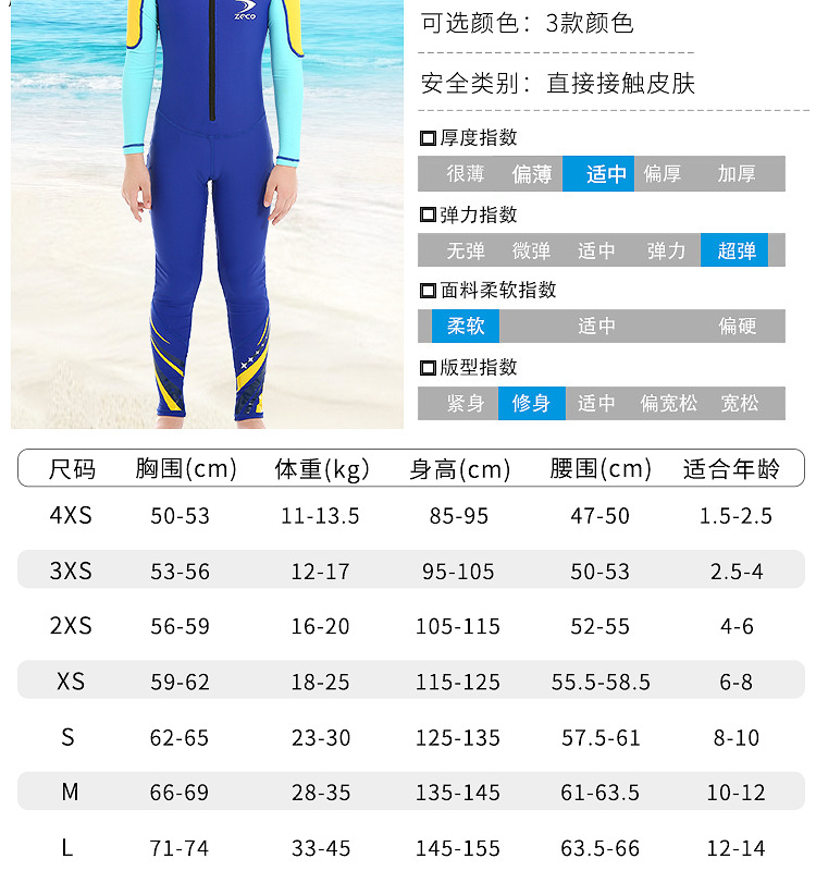 2.5mm子供ウェットスーツ男女子供水着ワンピース長袖前開きファスナー防寒日焼け止めサーフスーツr030