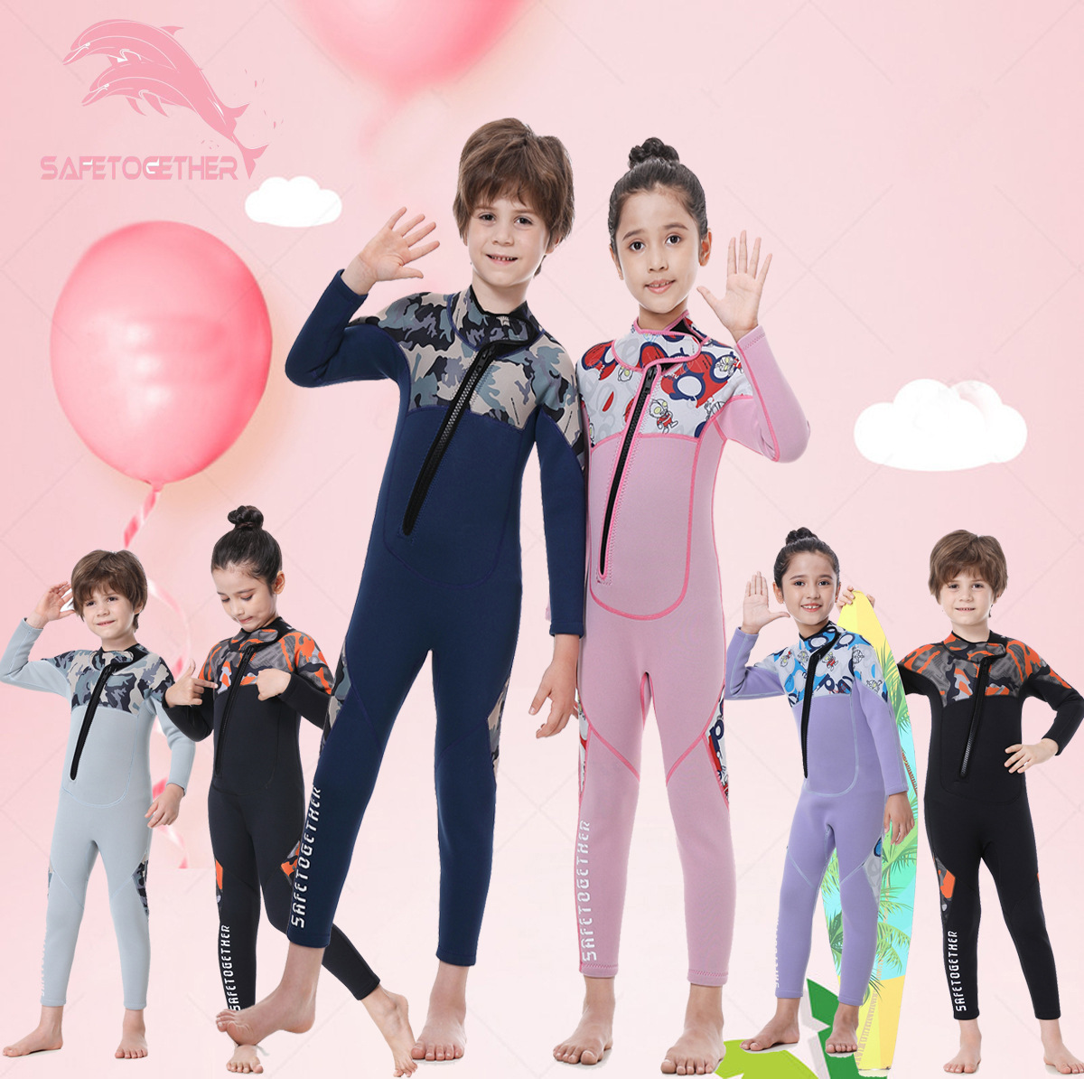 3mm子供ウェットスーツワンピース保温水着男女子供シュノーケルサーフィン日焼け止めクラゲ長袖ウェットスーツ