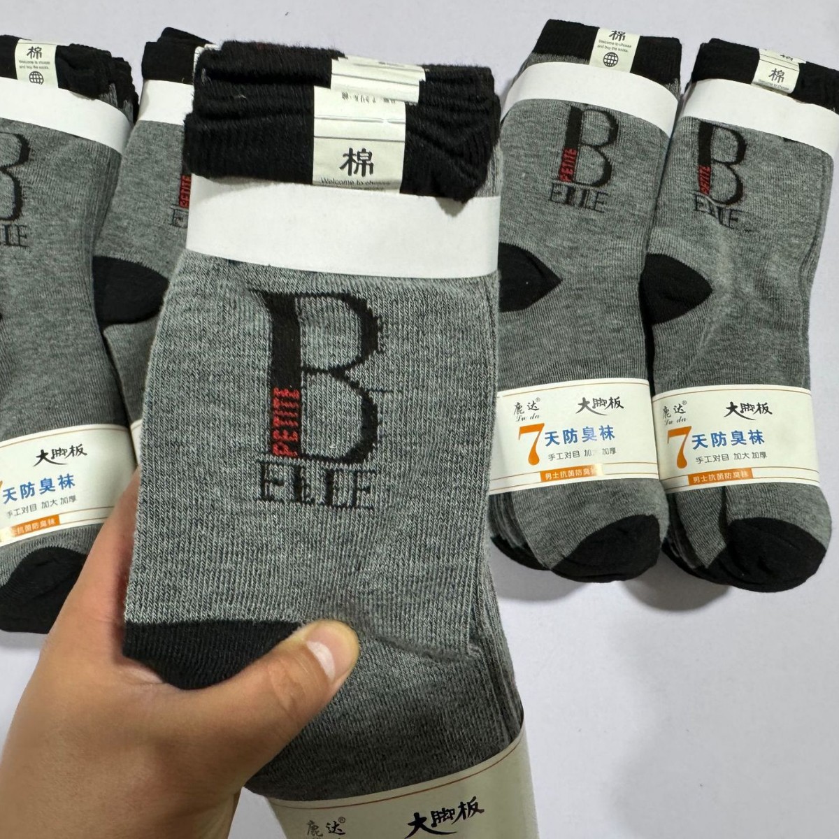 秋冬綿靴下、大きい足の男性靴下、B字グレー、厚手、中高年露店靴下、ルーズソックス、卸売露店靴下