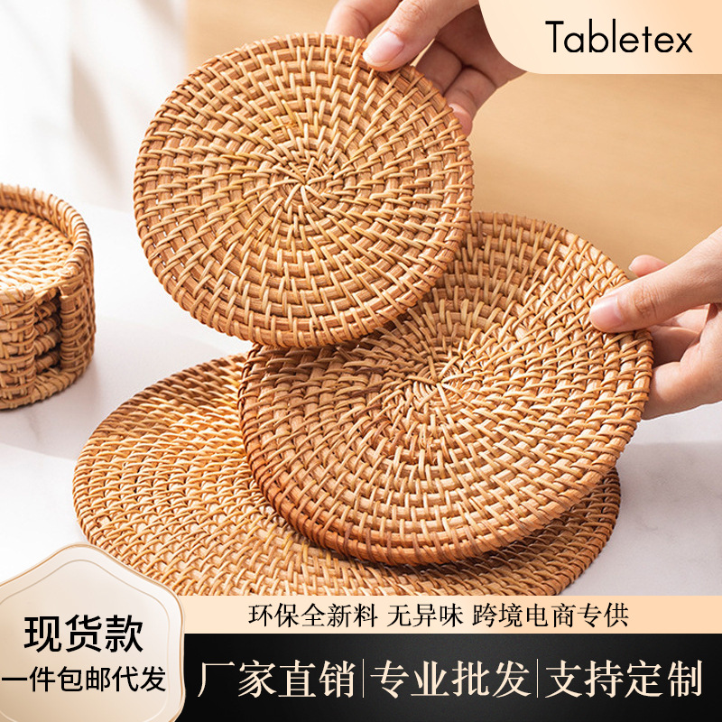 ベトナム製編み秋藤コースター、純手作り茶托、保温マット、茶道セット、田園風茶器