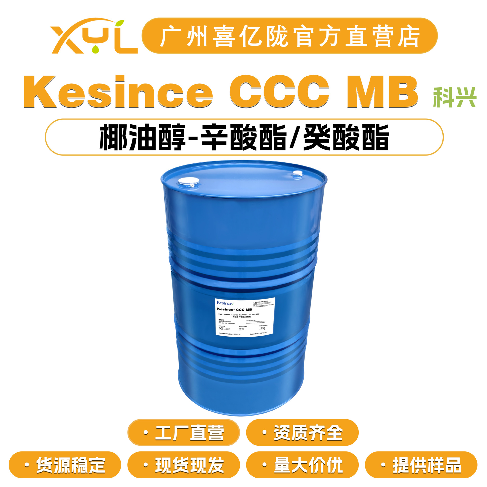 COSINCO CCC MB 保湿剤 ココナッツオイル-オクチノ酸エステル/オクチノ酸エステル 100g MOQ