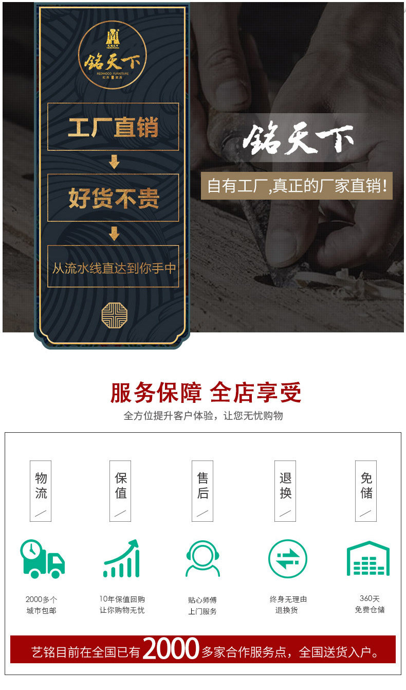【工艺】 | 榫卯结构 | 【售后】 | 终身质保,上门维护。十年保值回购。 |