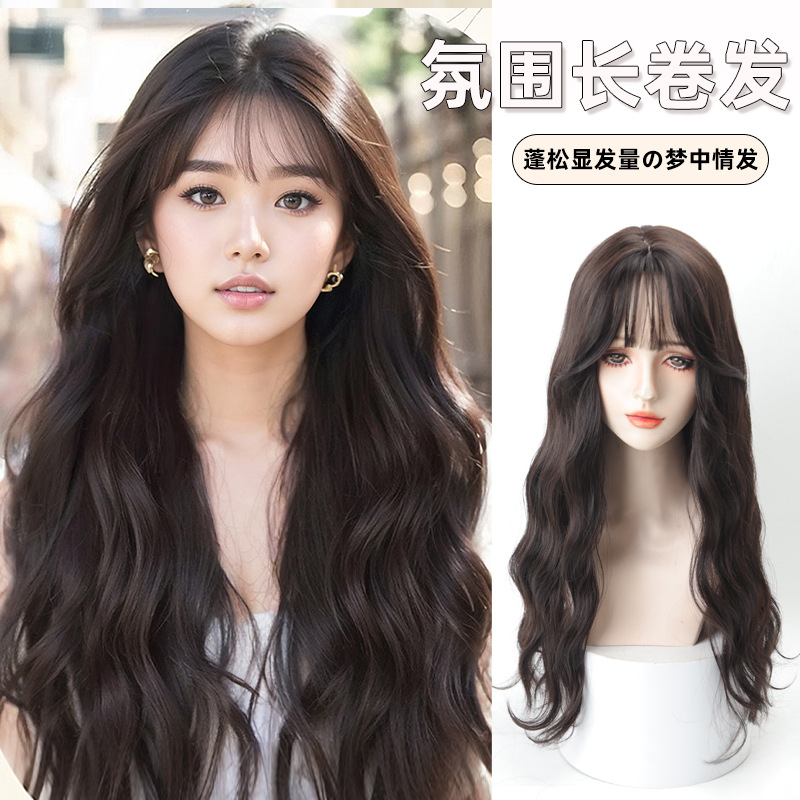 メーカー卸売りかつら全髪型長巻き髪大波ファッション空気前髪化繊大頭皮かつらカバー