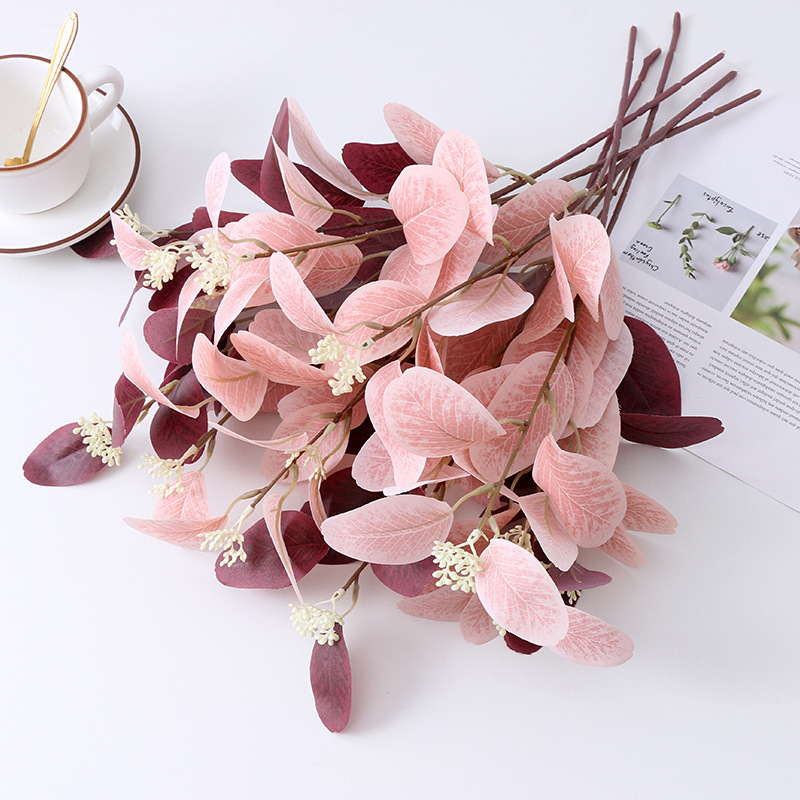 ユーカリの木の葉のモランディ色の結婚祝いの講堂の花芸の生け花のオリーブの枝のシミュレーション3フォークのユリの葉