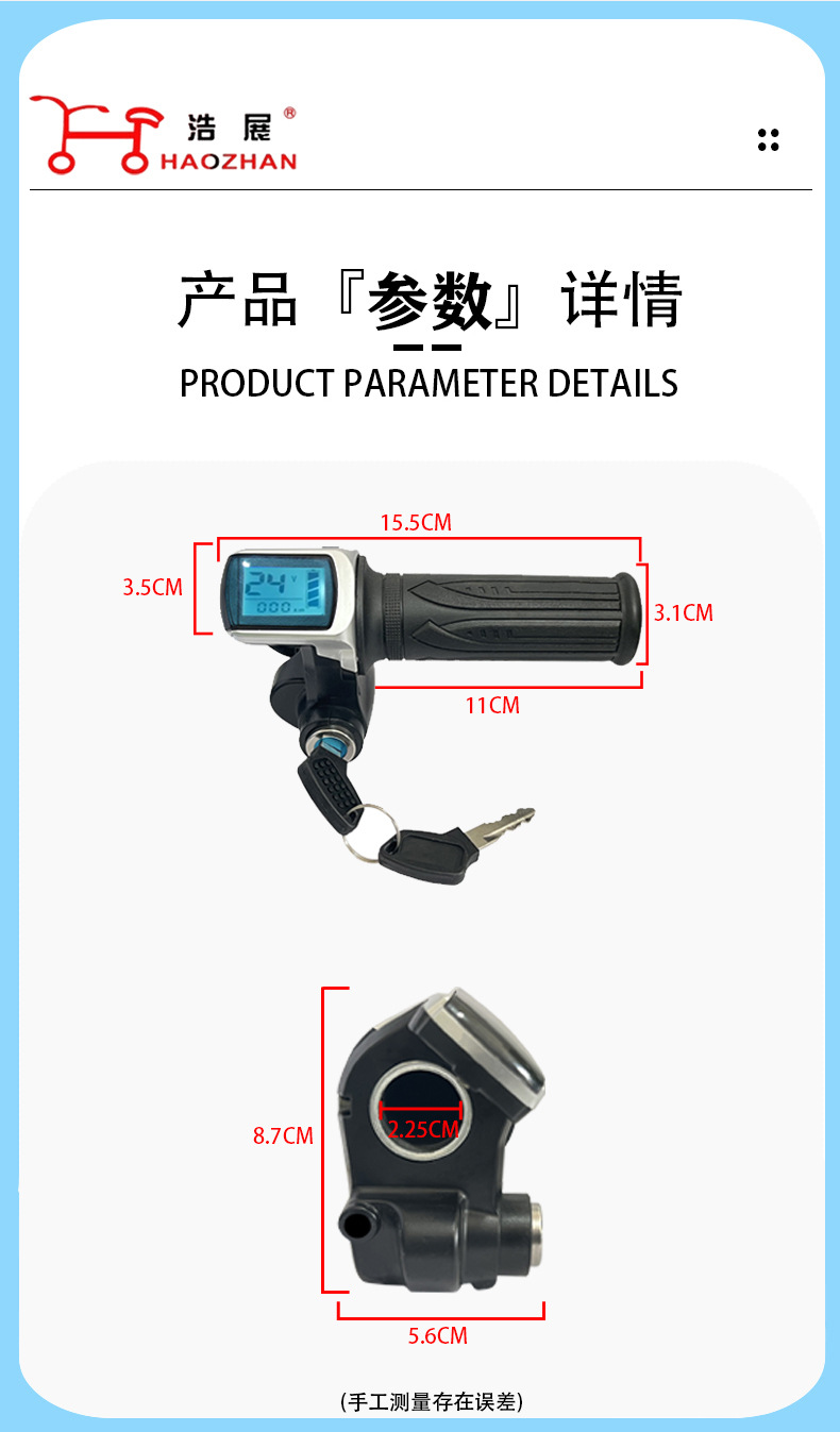 電動自転車スピードコントロールハンドル アルミ合金 電力表示 24V36V48V LCDスクリーン搭載 スロットルハンドル