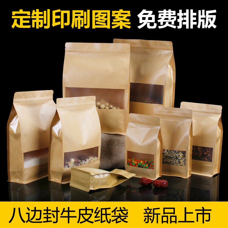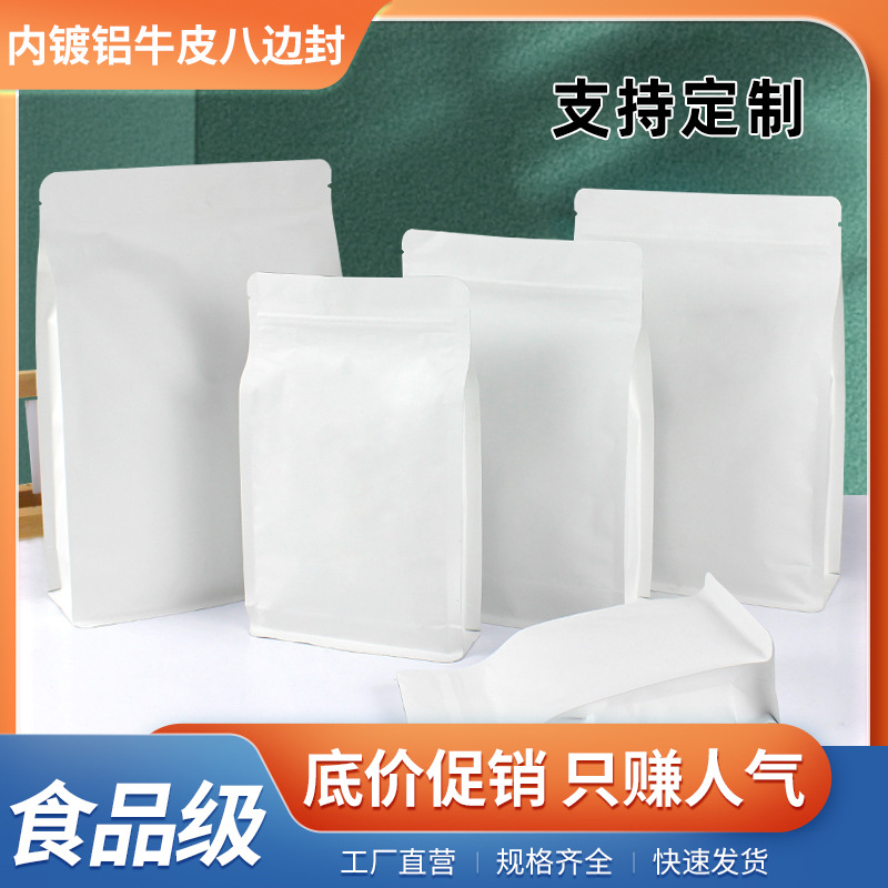 卸売り白クラフト紙八辺封クラフト紙袋開窓自立自封袋茶葉袋ギフト袋密封袋