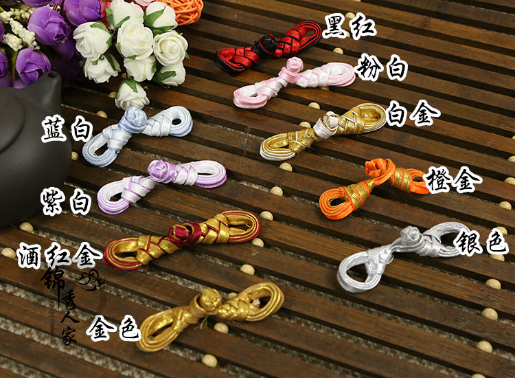 本品纯手工制作,精美时尚,尽显中国传统之美!采用了绸缎为原料,高质桨糊做为辅料,颜色多样.适合用来做唐装旗袍盘扣,也可用来做为各种装饰品