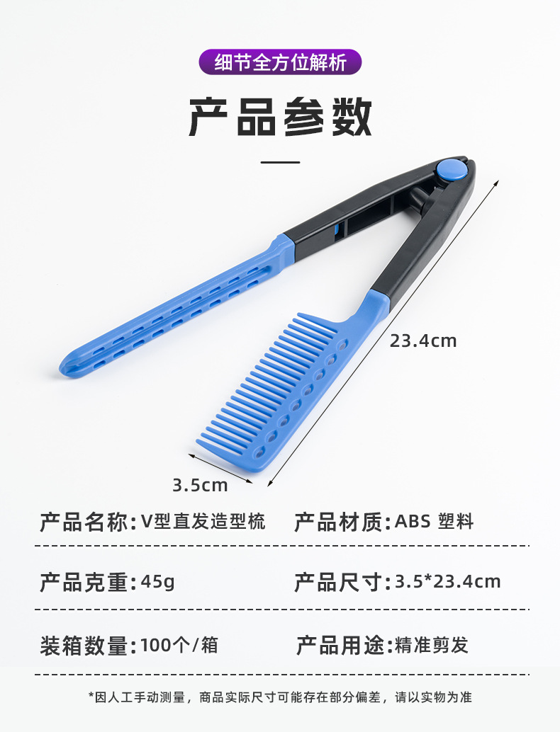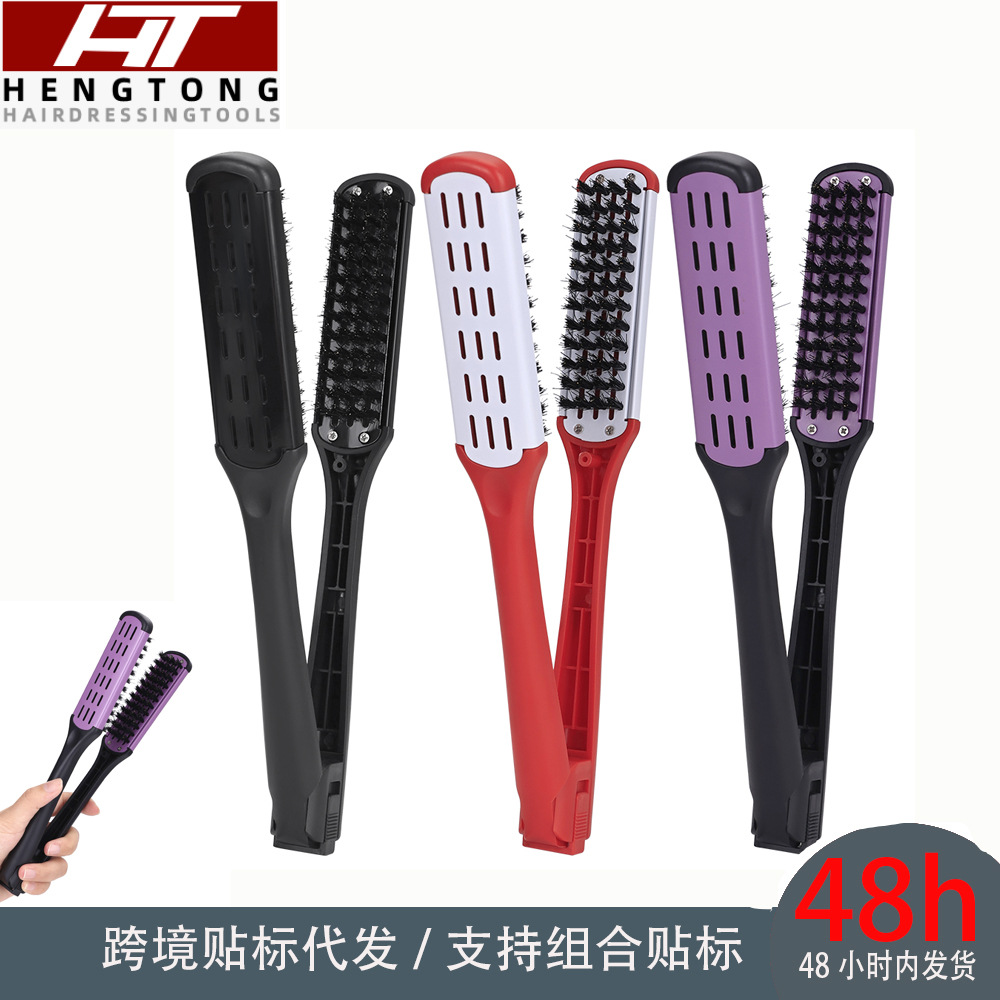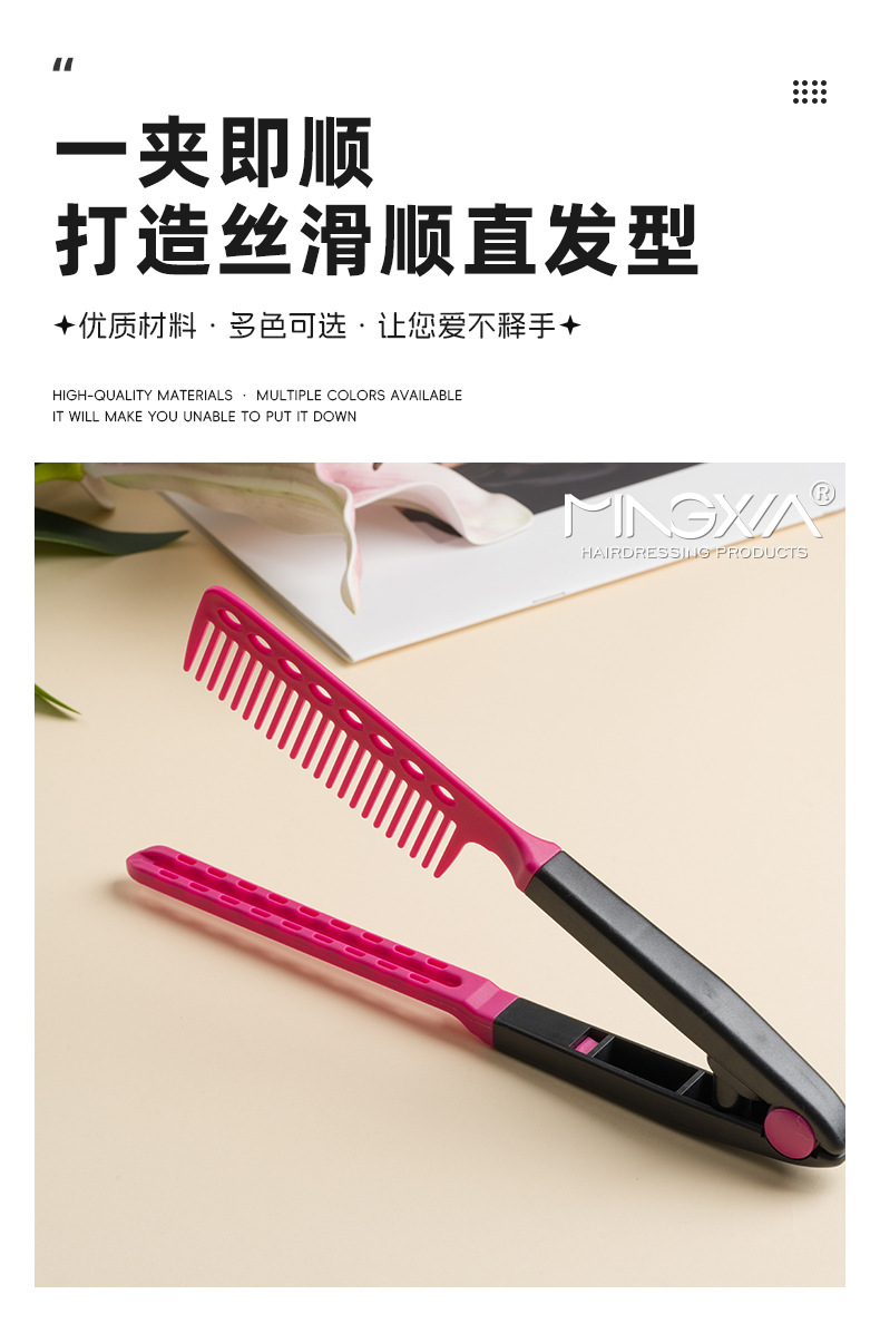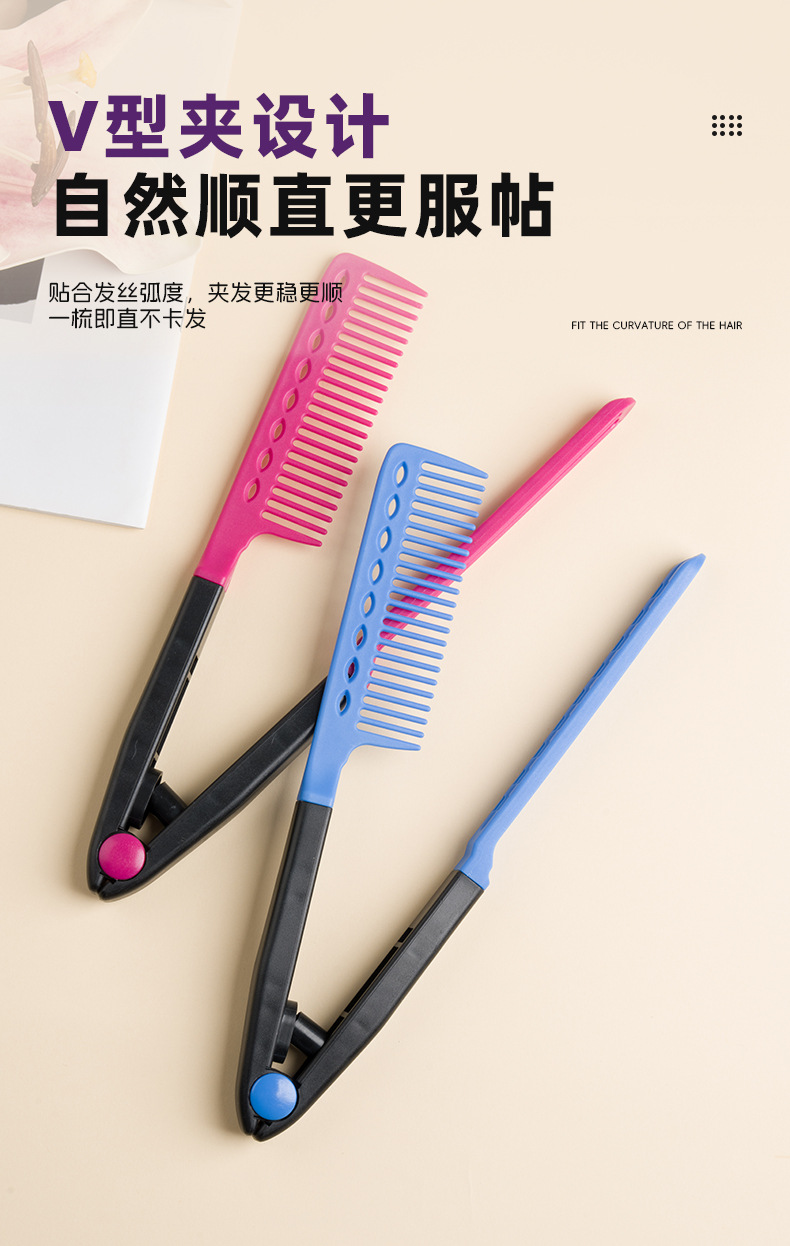 亚马逊跨境美发梳盘发造型梳V型夹式发梳家用美发拉直梳子批发