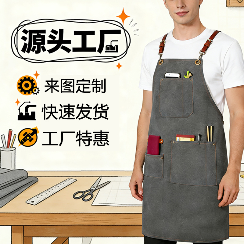 アマゾンクロスボーダーミルクティー店飲食防水エプロン焙煎男性作業服ファッション美甲師帆布エプロン