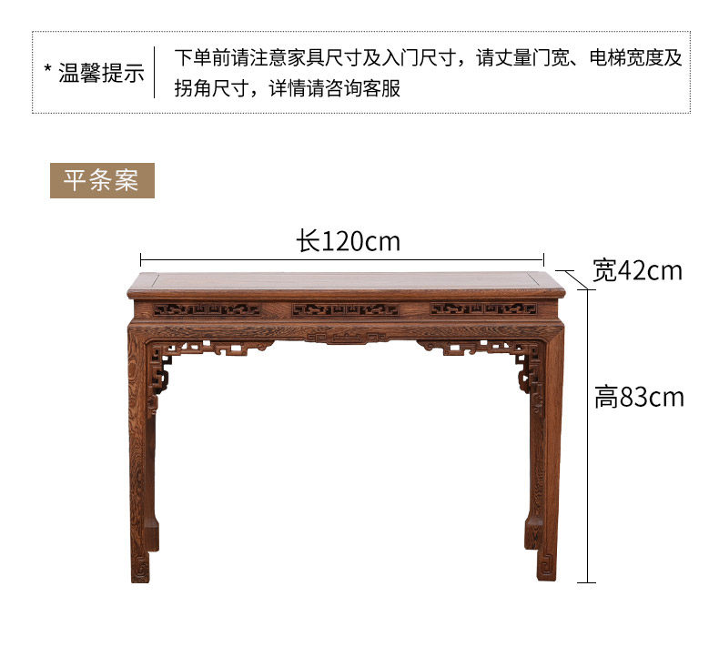 条案:长120*宽42*高83cm (手工测量拍照,存在0-3cm误差属于正常现象,介意请慎拍) |