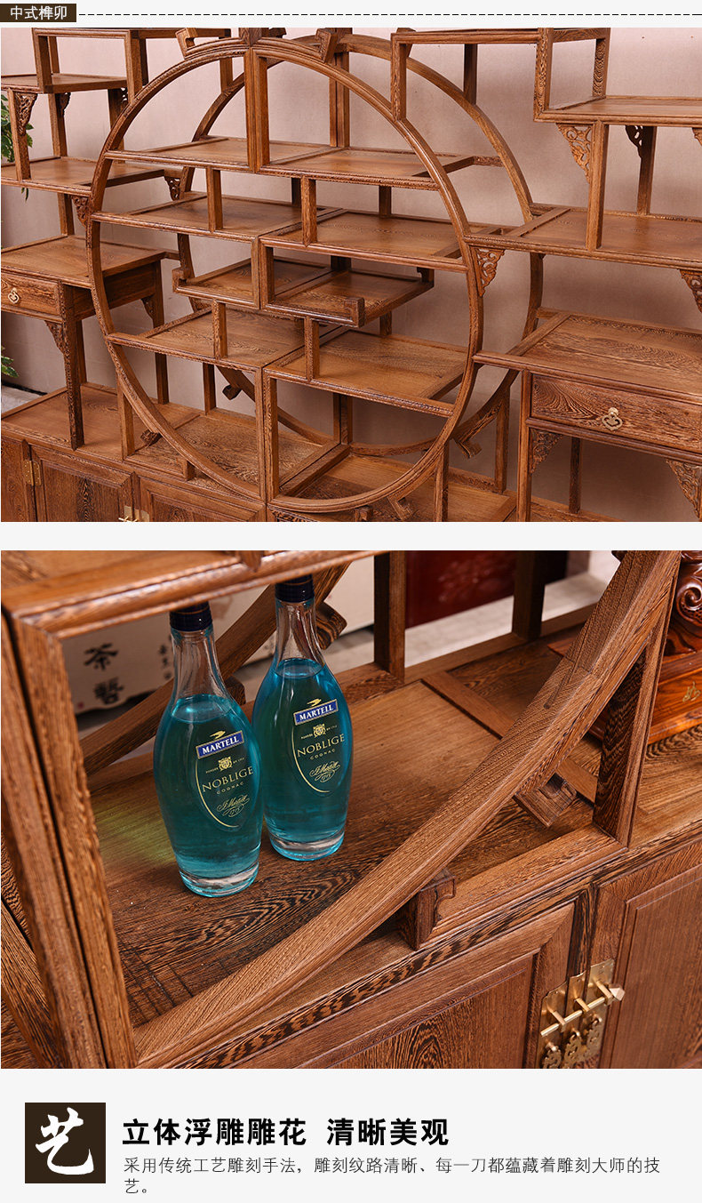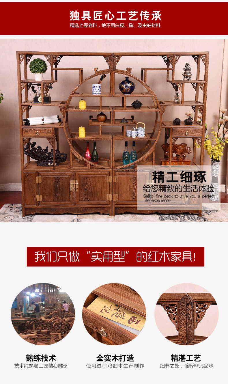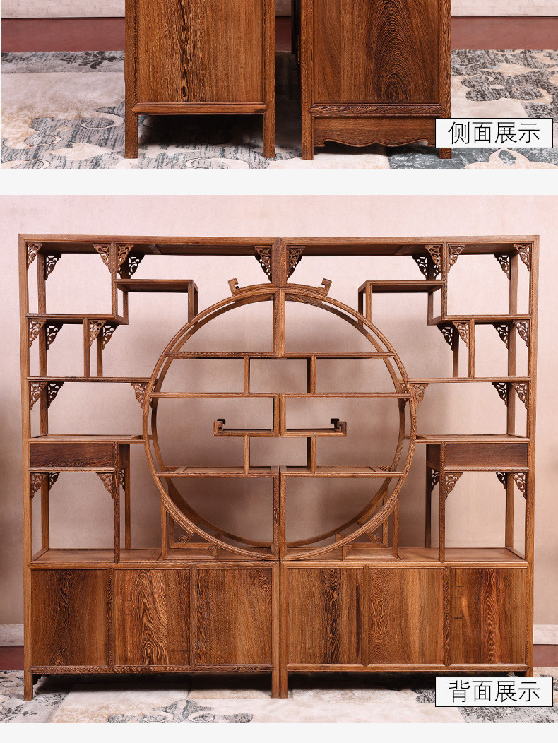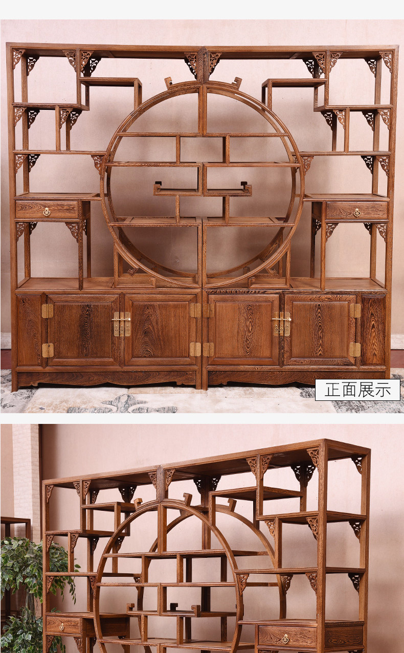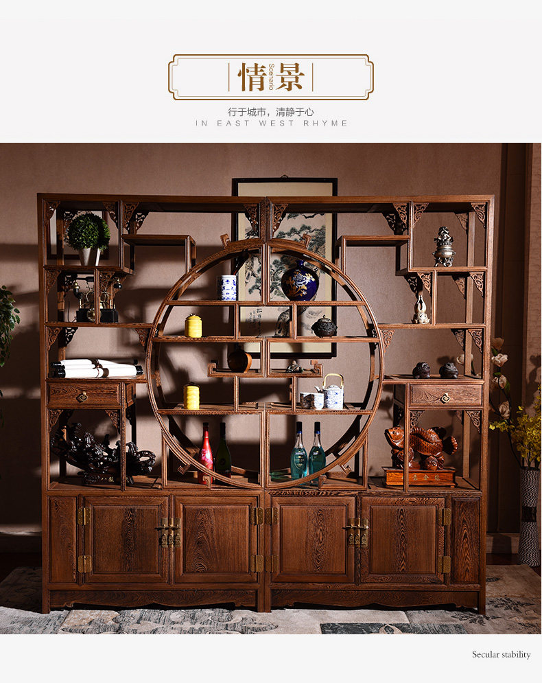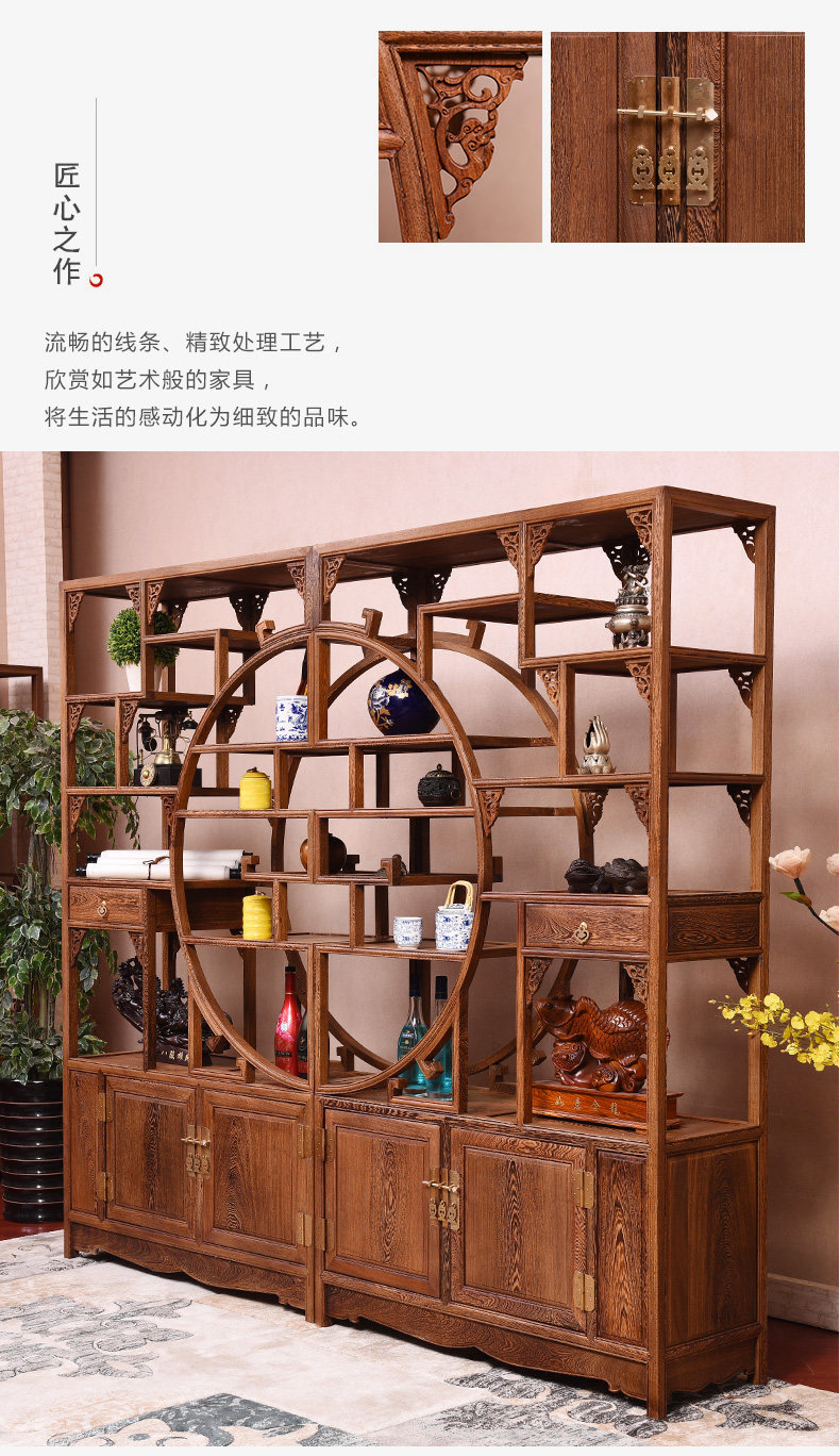 Yiming Tianxia キャンザビア血檀新中国風インナーサークルボーグラック全無垢材パーティションマルチトレジャー玄関ラック収納