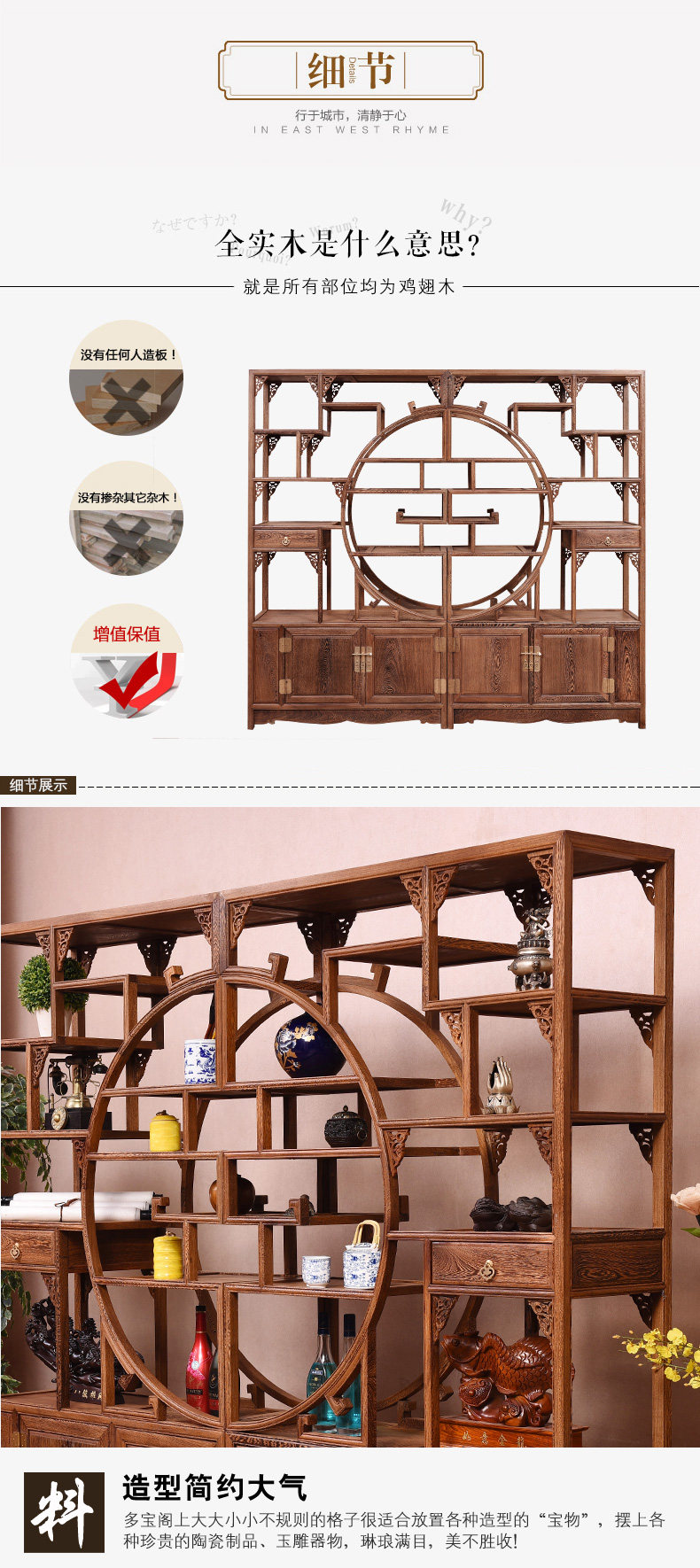 芸銘天下紅木家具手羽木博古架実木中国式模造骨董棚多宝閣博古架