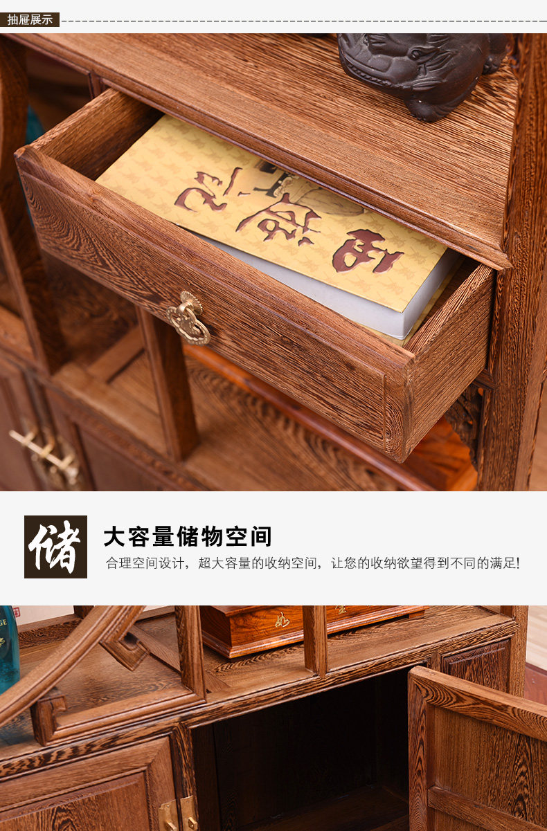 Yiming Tianxia キンダーバラザボガラック新しい中国風無垢材ディスプレイラックアフリカ小葉ローズウッド収納ラック