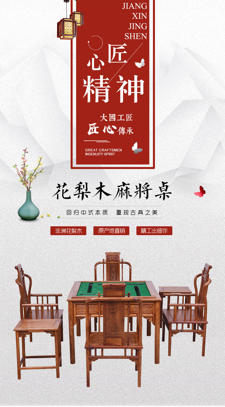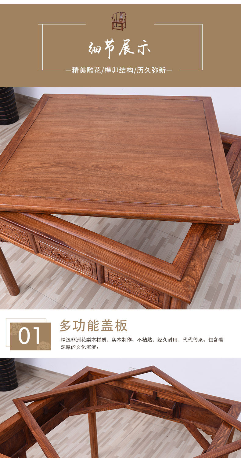 【名称】 | 花梨木麻将桌(机芯质保90天) | 【风格】 | 明清古典 |