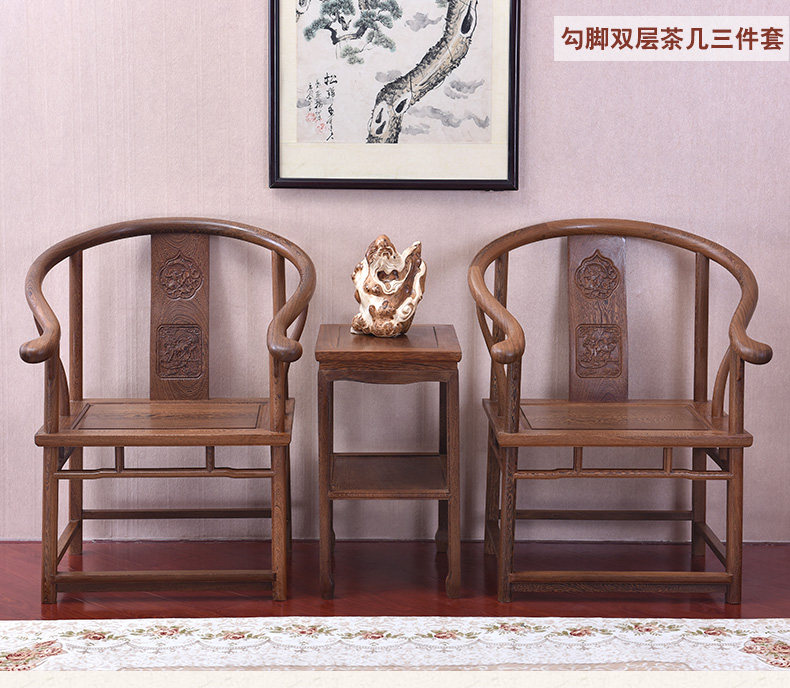 【商品尺寸】 | 圈椅:长62*50*坐高42(90) 勾脚双层茶几:长36*宽48*高62 简单茶几:长38*宽48*高60 带抽茶几:长38*宽48*高60 长城茶几:长35*宽45*高65CM (手工测量拍照,存在0-3cm误差属于正常现象,介意请慎拍) | ||