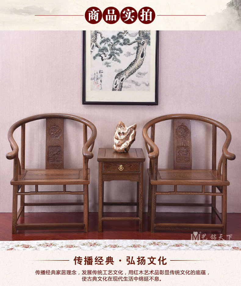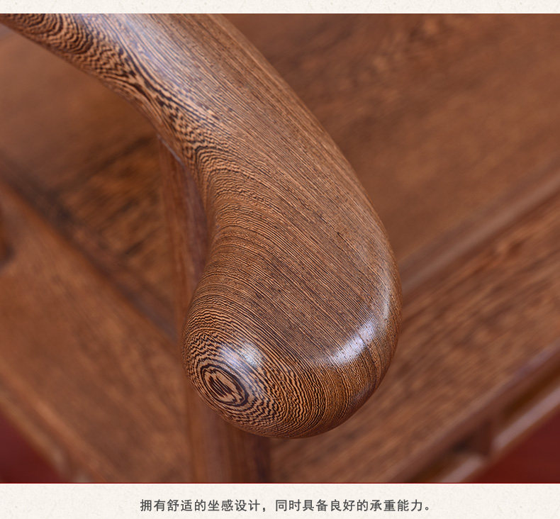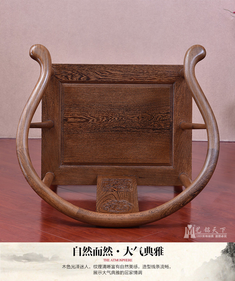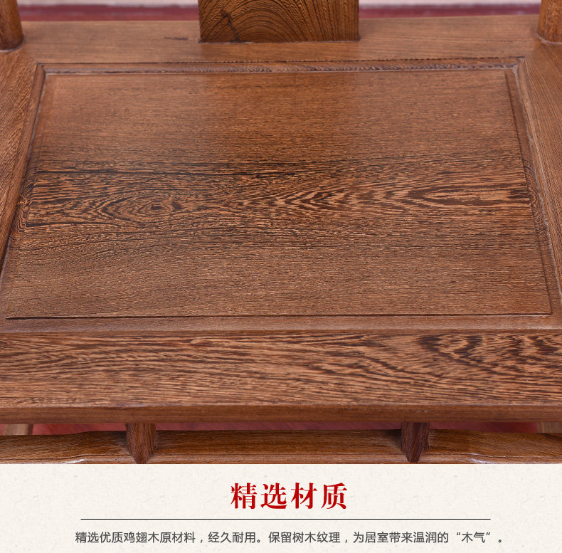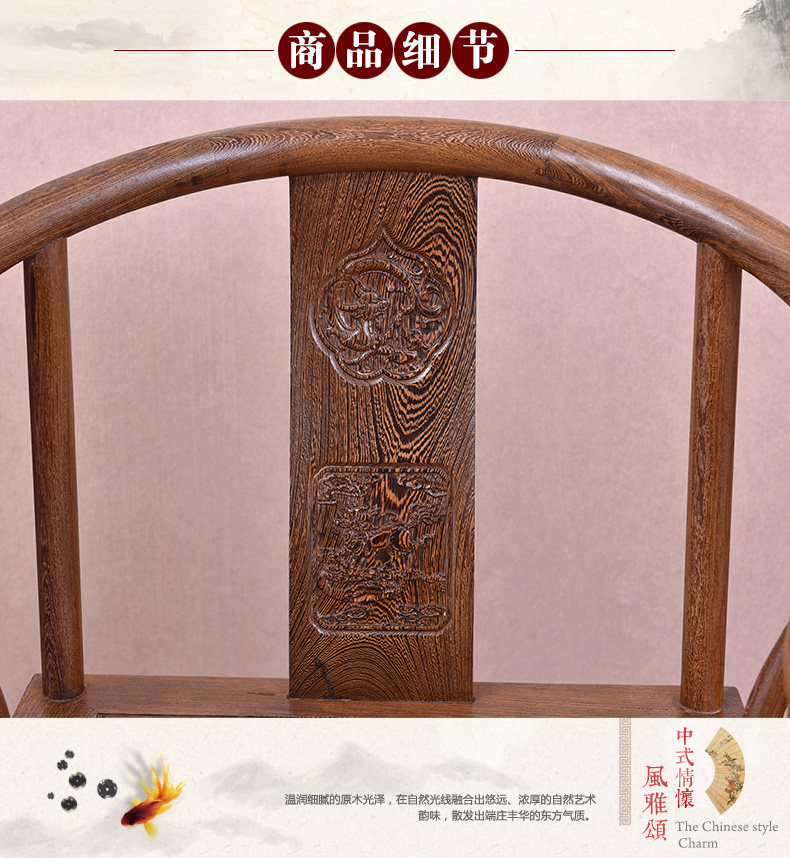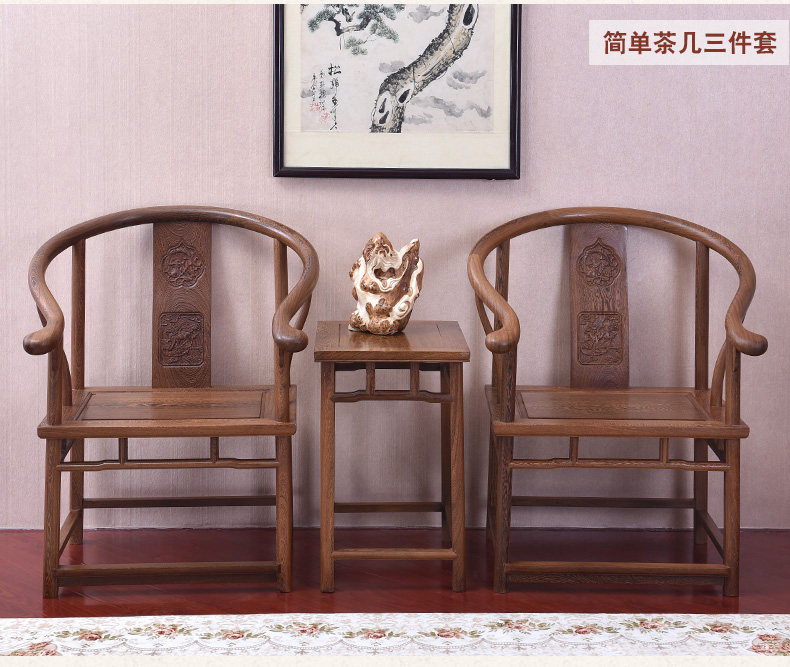 【名称】 | 鸡翅木麒麟圈椅三件套 | 【风格】 | 明清古典 |