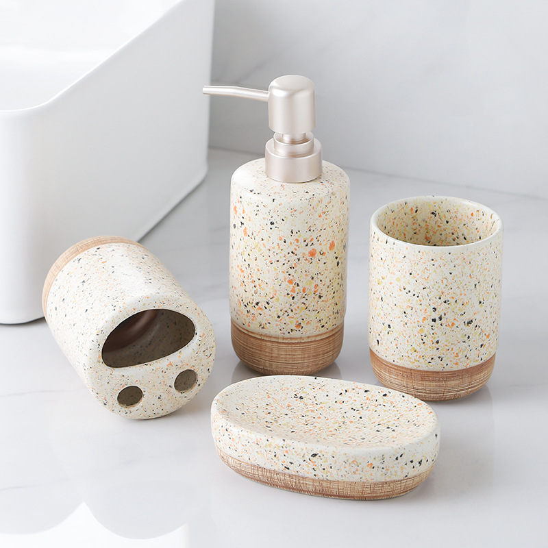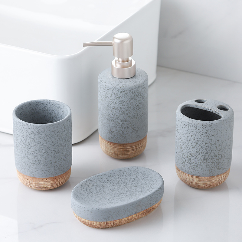 軽豪華高級洗面セット分装瓶ぶち身木底トイレ乳液瓶石鹸皿陶磁器風呂四点セット