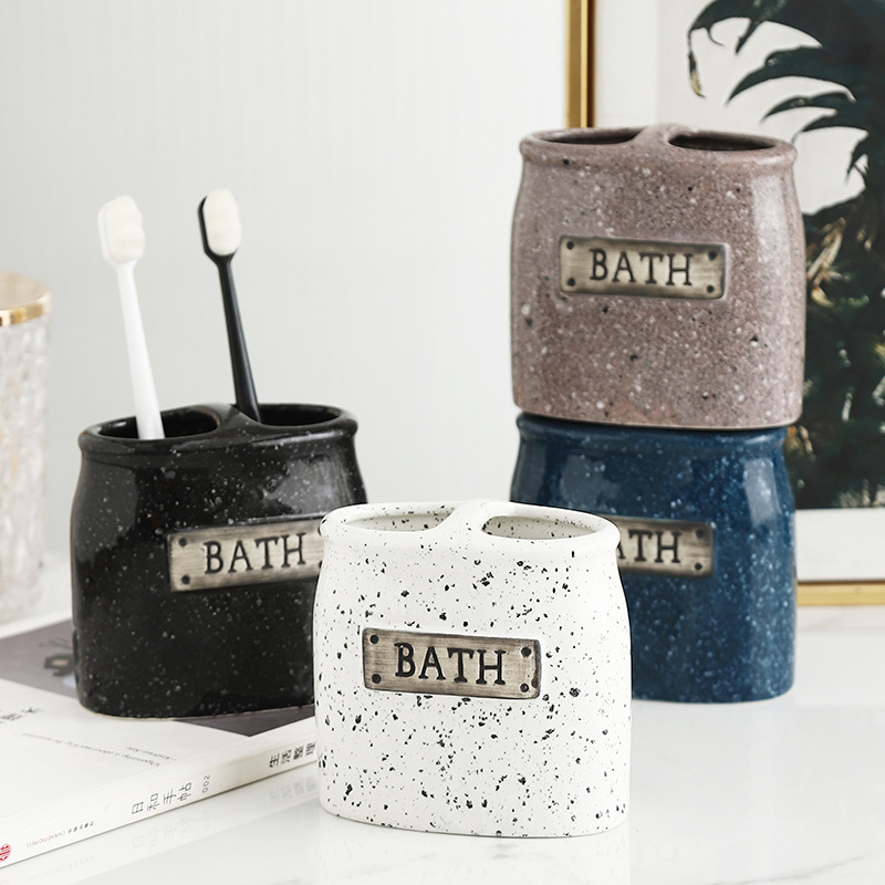 創意大理石金紋洗面カップ民宿家庭用浴室カップル陶磁器洗面カップ珪藻泥セット
