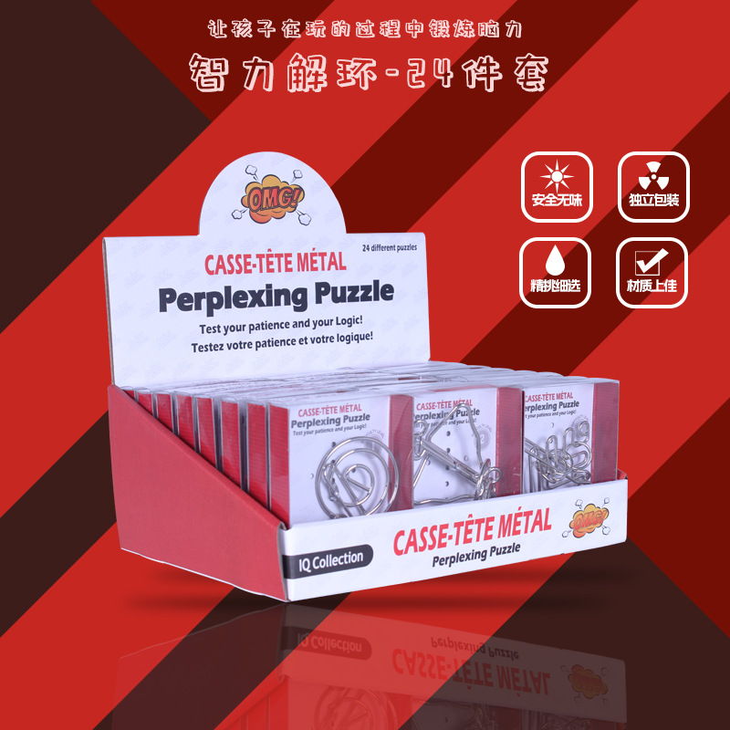 ネットで話題の24個セットの連環解きパズル、大人と子供向けの知育玩具、頭脳を刺激する九連環パズル、卸売対応