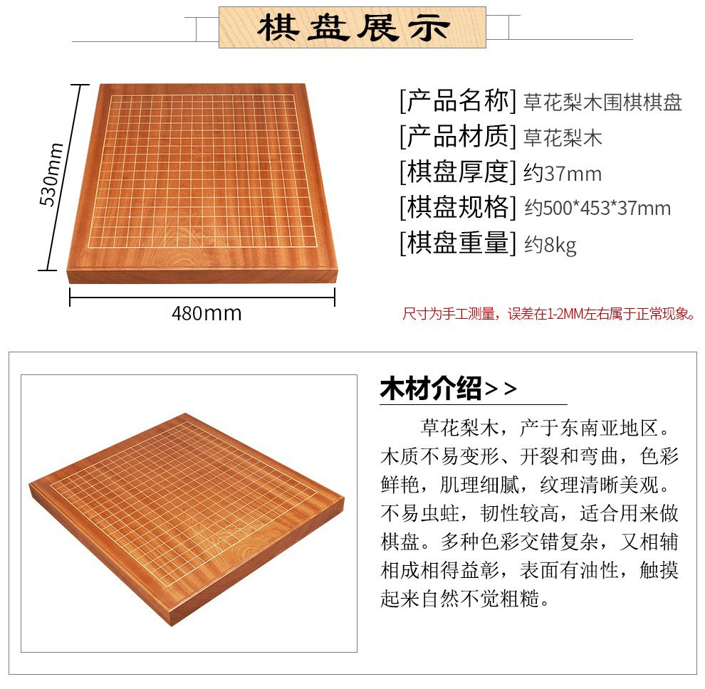 御聖囲碁盤全実木草花梨木独木37mm厚片面囲碁盤面成人高級盤