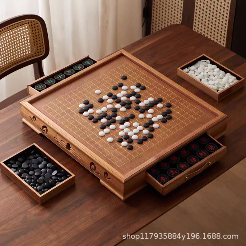 実木囲碁中国将棋二合一盤成人児童初学五子将棋セット両面実木棋卓