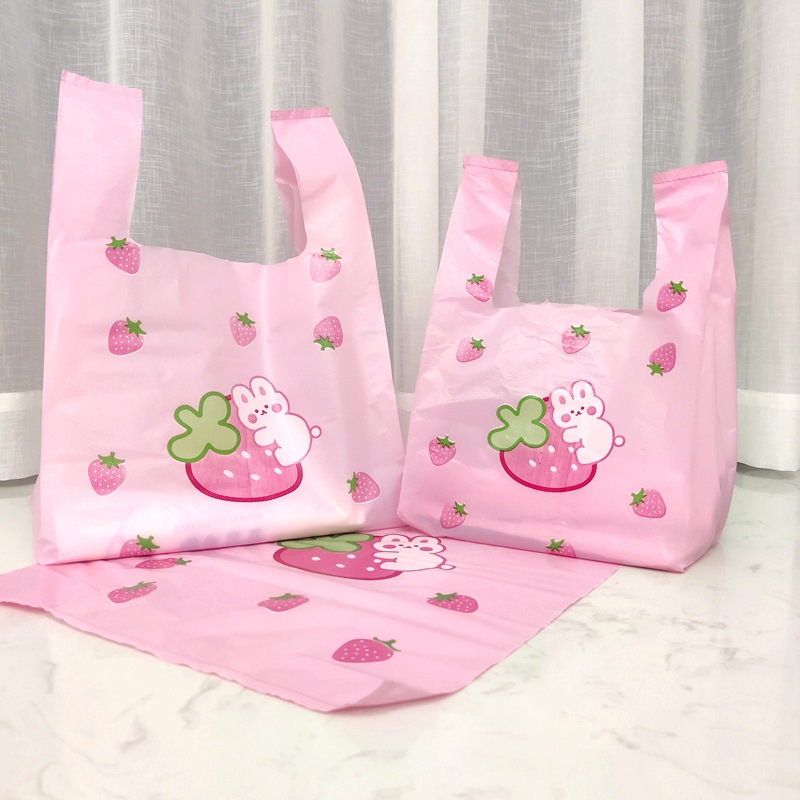 赤いイチゴのウサギの漫画のベストバッグのピンクのプラスチックのベストの手提げの服の贈り物の馬甲のテイクアウトの包装のゴム袋