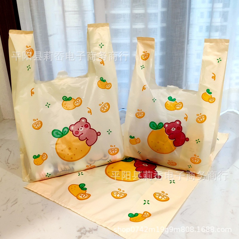 网红橘子熊卡通背心袋粉色塑料背心手提服装礼品马甲外卖打包胶袋