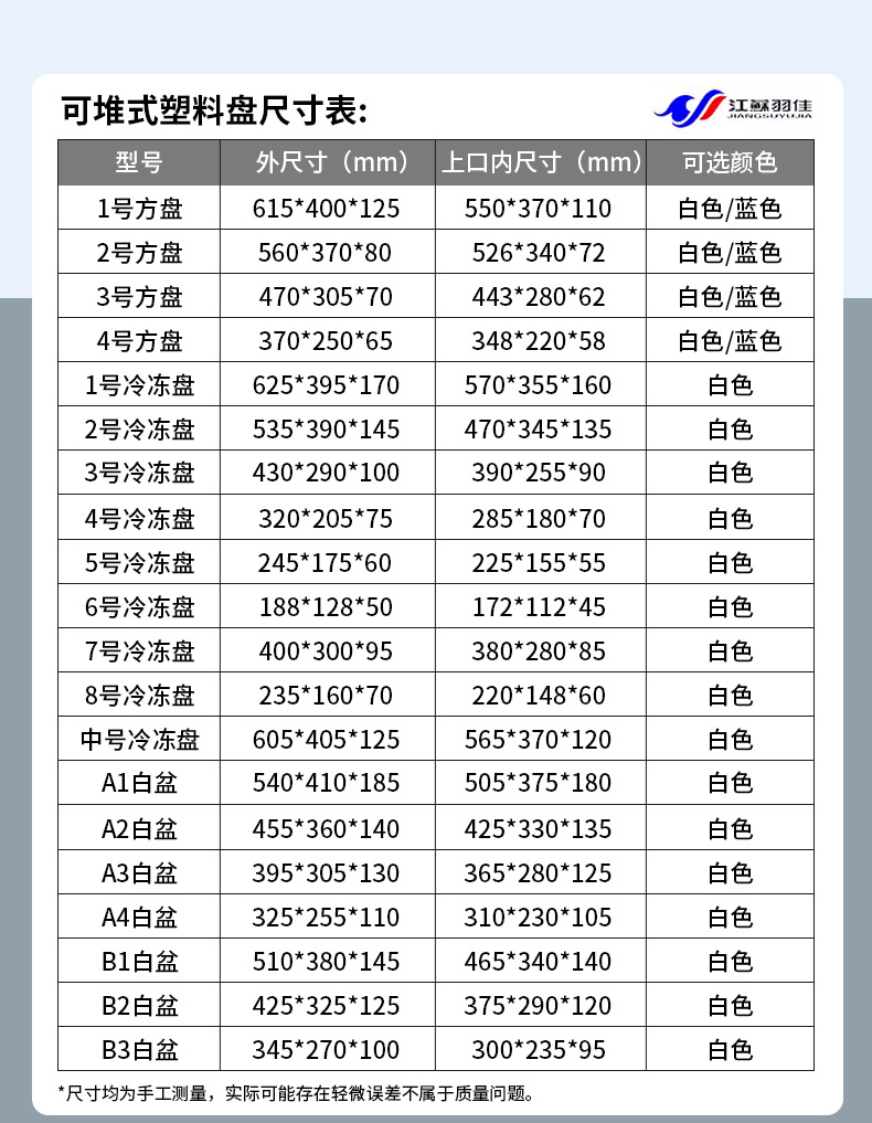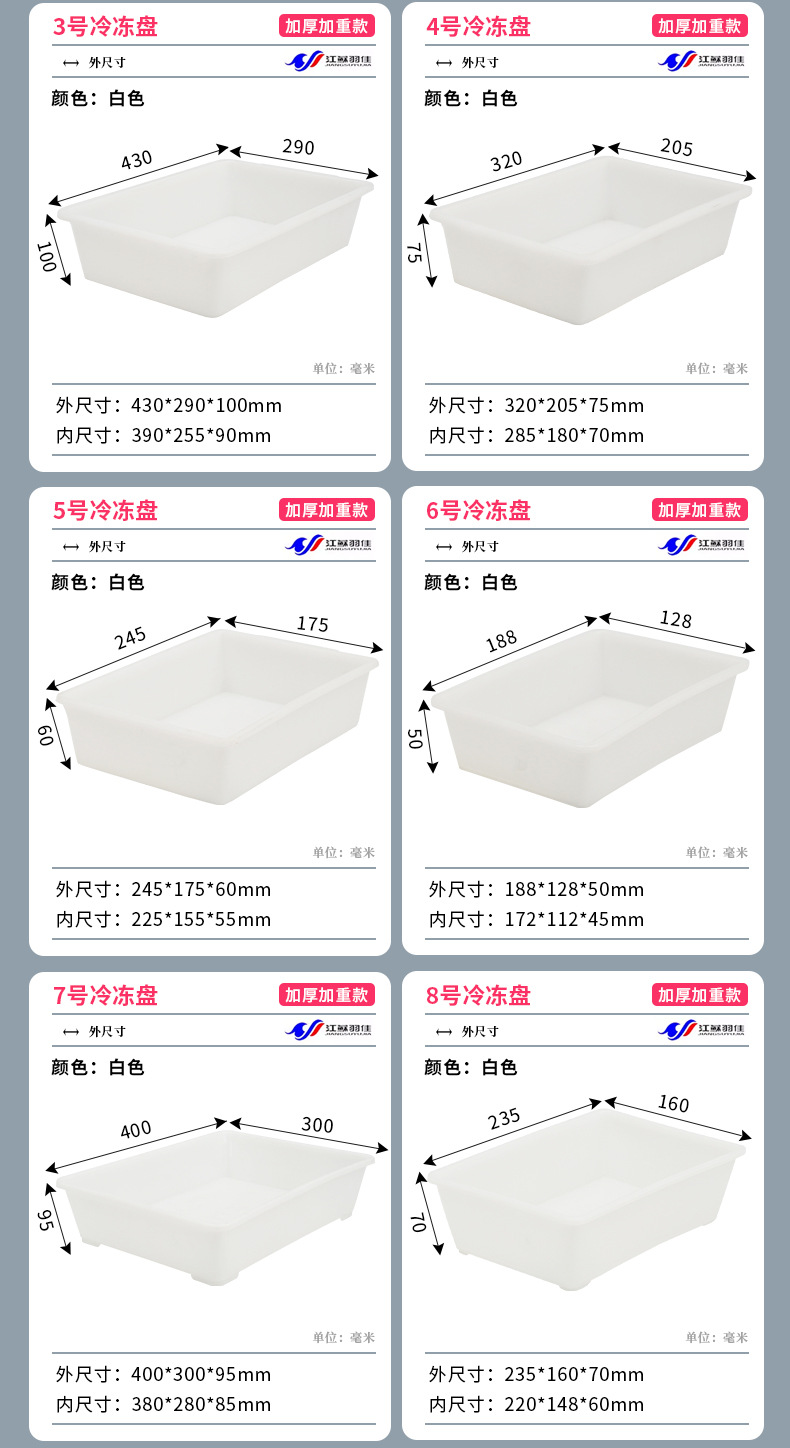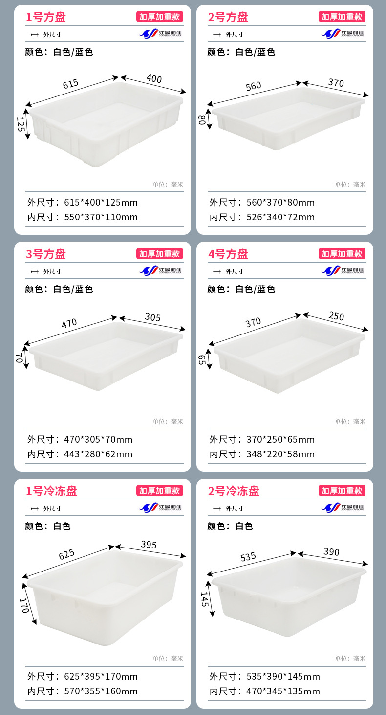 8番冷凍皿 (245*165*70),7番冷凍皿 (400*305*90),6番冷凍皿 (190*130*50),5番冷凍皿 (245*175*60),4番冷凍盤 (320*205*75),3番冷凍皿 (430*290*100),2番冷凍皿 (535*390*145),1番冷凍皿 (625*395*170),中号冷凍皿 (605*410*125),タイプa 4号白盆(335*260*115),A型3号白盆(390*310*130),A型2号白盆(460*365*140),タイプa 1号白盆(540*410*185),B型3号白盆(340*270*100),B型2号白盆(425*330*125),B型1号白盆(510*375*140),4番角盤 (370*250*65),4号角皿(370×250×65) ブルー,3番角盤 (470*305*70),3号角皿(470×305×70) ブルー,2番角盤 (560*370*80),角皿2号(560×370×80) ブルー,1番角盤 (615*400*125),1号角皿(615×400×125) ブルー