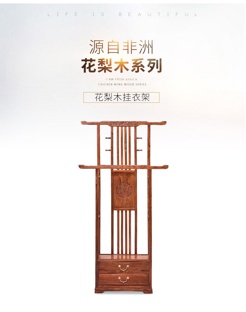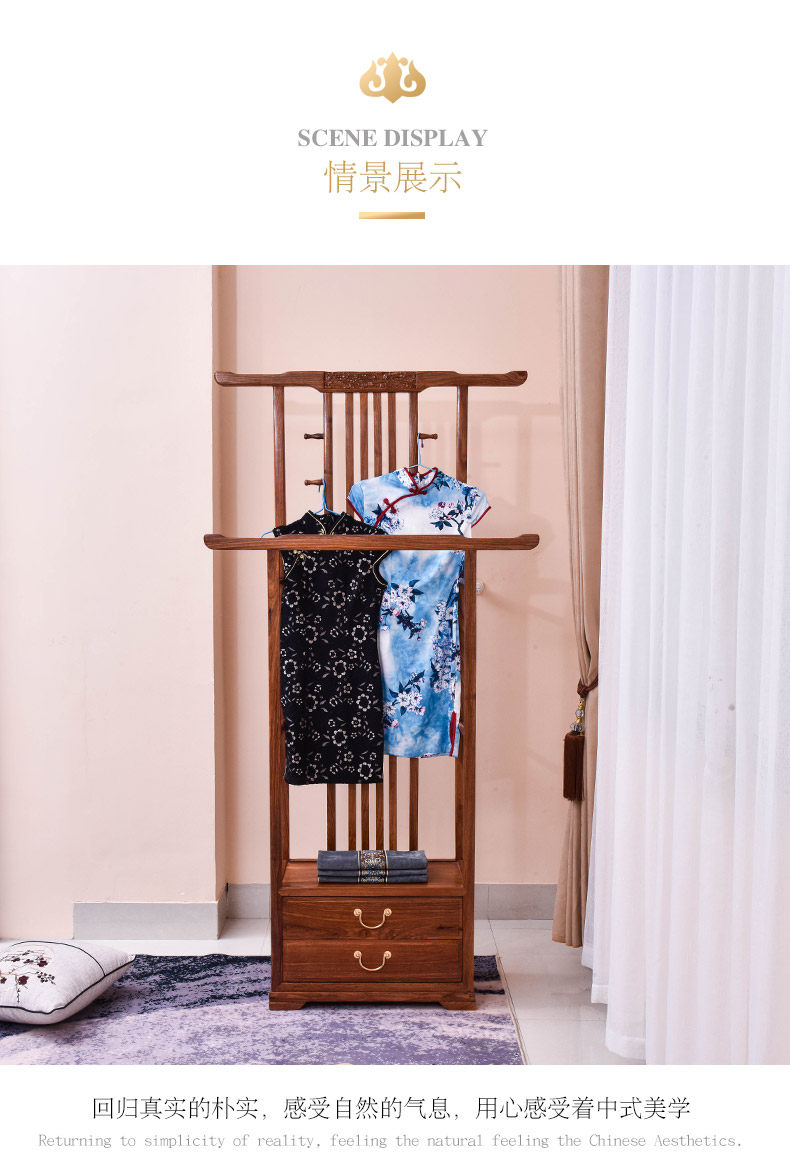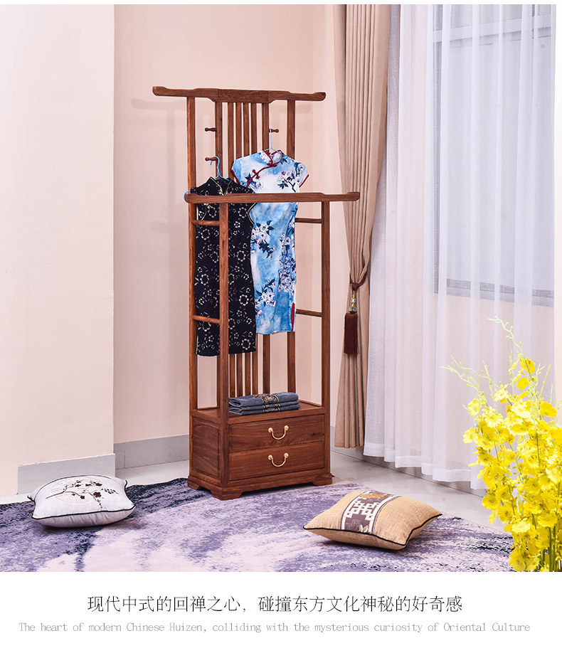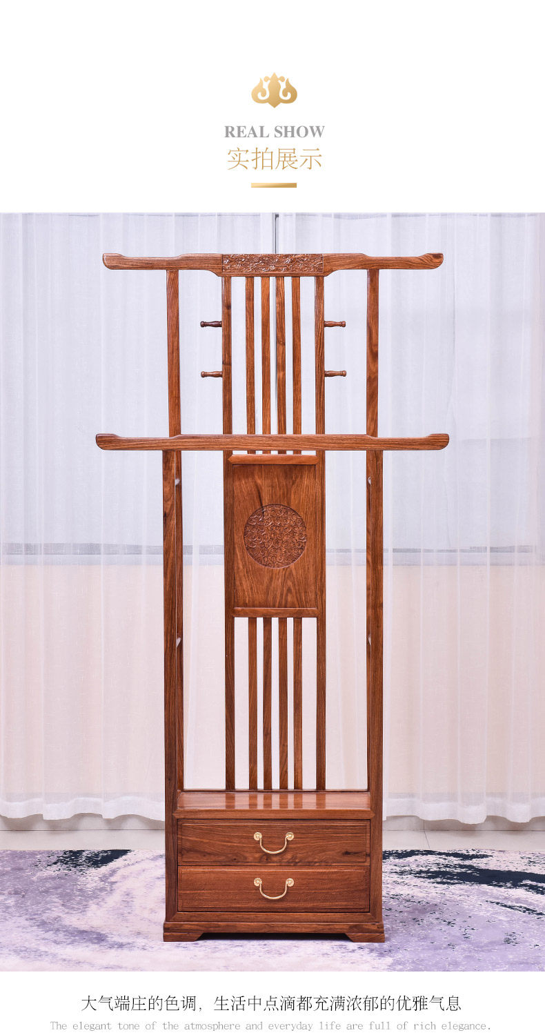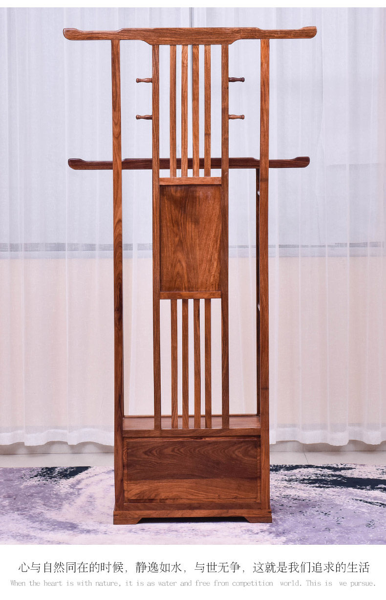 芸銘の天下の手羽先の木の服の帽子の棚の新しい中国式の実木の服はハンガーの赤い木の地面にぶら下がって支えます。