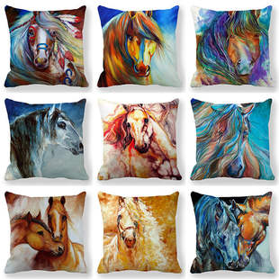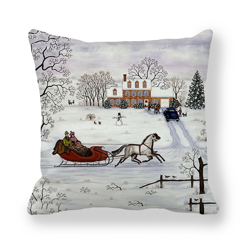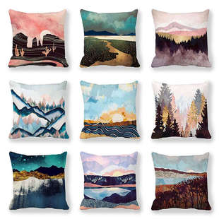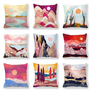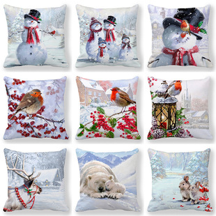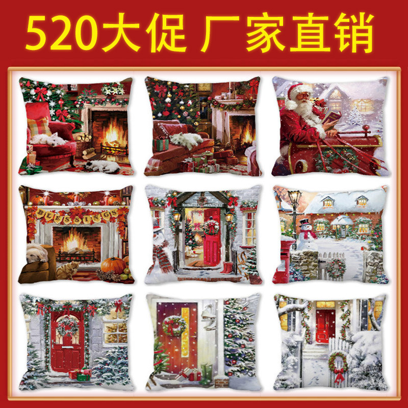 temu跨境热销抱枕套节日油画风写实感沙发靠垫套枕套亚麻抱枕套
