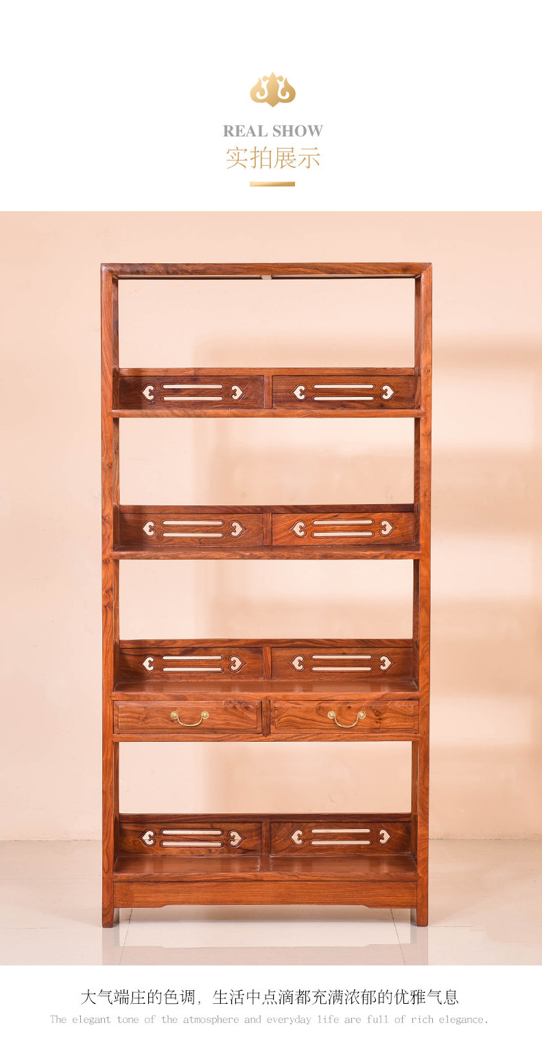 Yiming Tianxia キンダーバラザボガラック新しい中国風無垢材ディスプレイラックアフリカ小葉ローズウッド収納ラック
