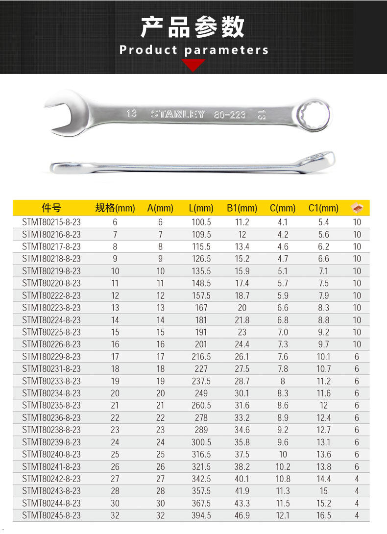 スタンリーbシリーズメートル梅レンチ開口両用レンチ工具梅開板手6-32mm