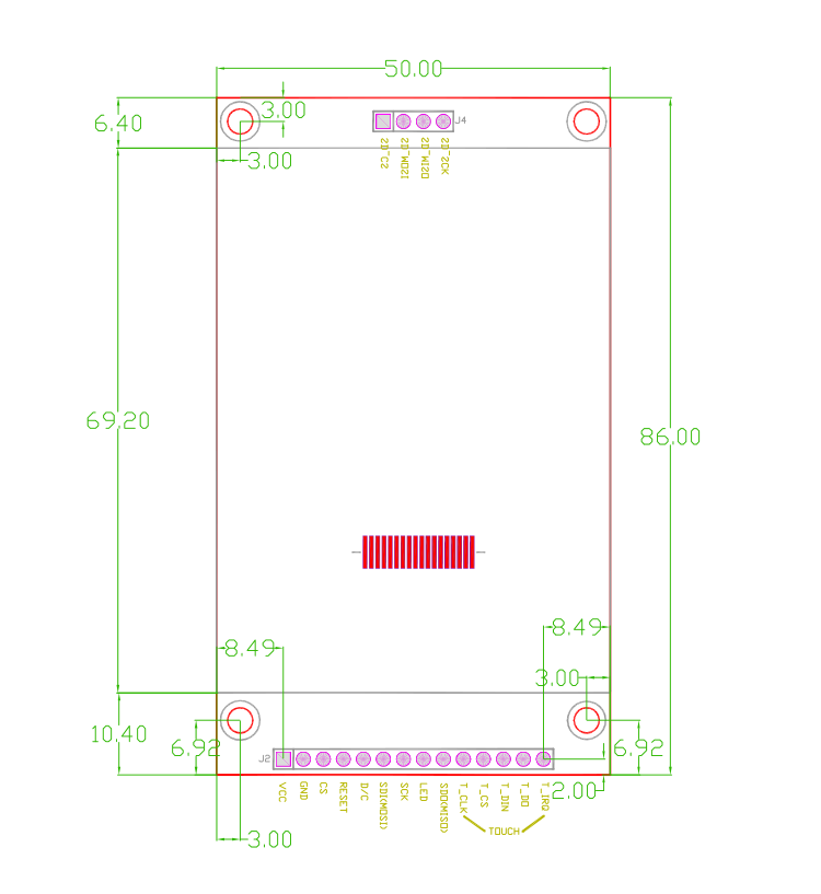 | 模块PCB底板尺寸 | 50.0x86.0(mm) |
