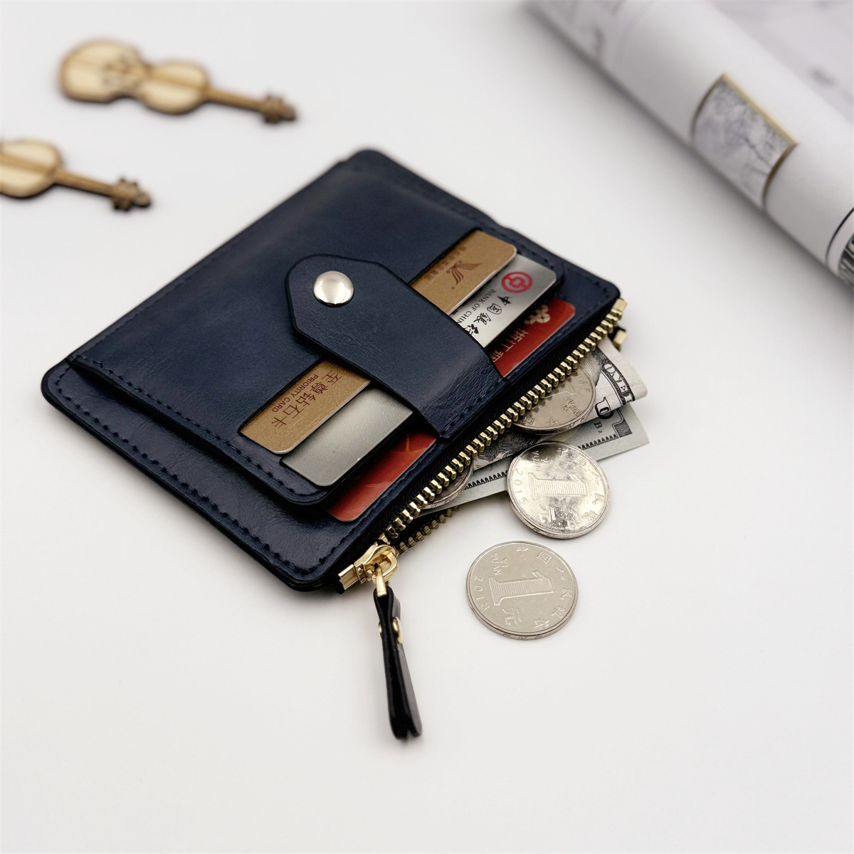新しいレディースショートバッグ、ファッショナブルでシンプルなレディースジッパー財布、オイルワックスレザー小銭入れ、カードホルダー、メーカー卸売