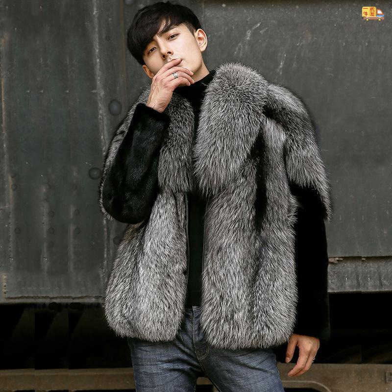 秋冬男型銀狐毛毛皮コートファッションジャケット毛皮一体ミンク毛襟厚い保温コート