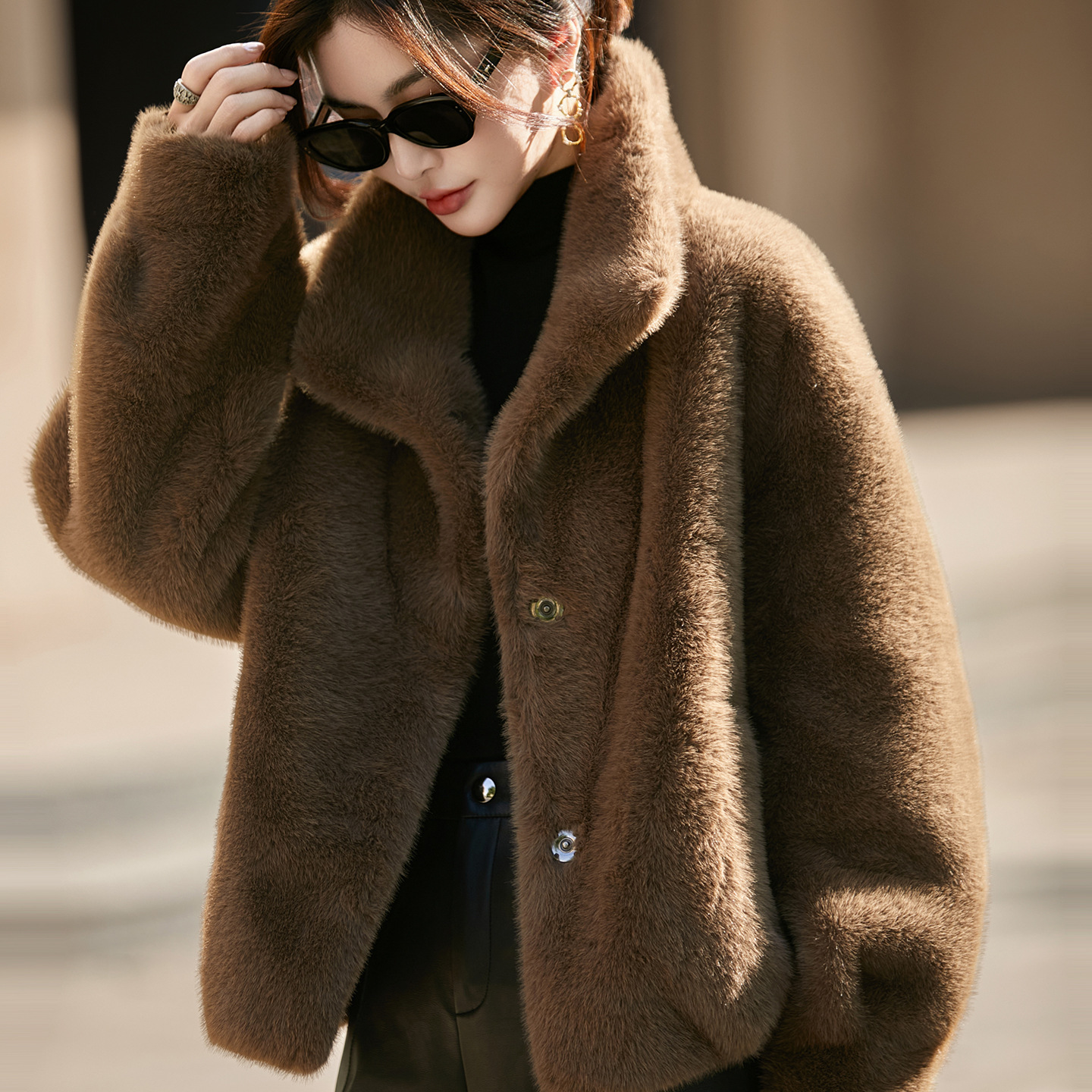2025秋冬韓国版ファーコート、ミンクファー、フォックスファー衿付きショートコート、ファッショナブルで多用途な女性用コート