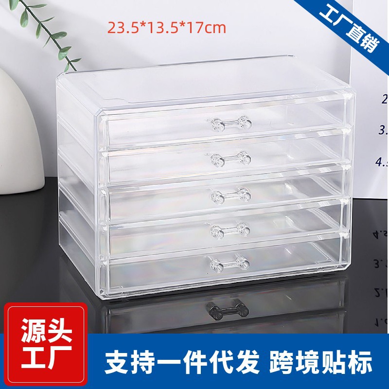 桌面抽屉收纳盒透明大五层化妆文具彩妆桌面笔刷架甲油胶整理柜